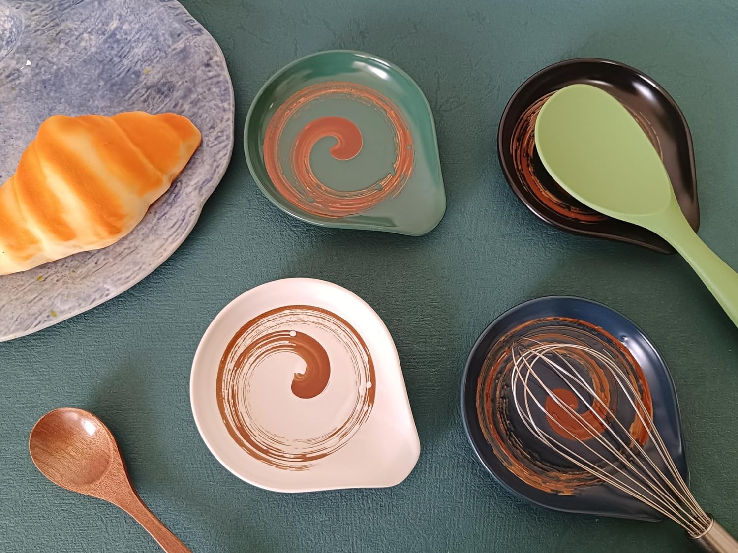 - 💕 【Good Material and Quality】: The cooking spoon holder for stove top is made of ceramic at high temperature. The kitchen spoon rest is cadmium-free, lead-free, safe and durable, not easy to scratch, rust, melt or age;
