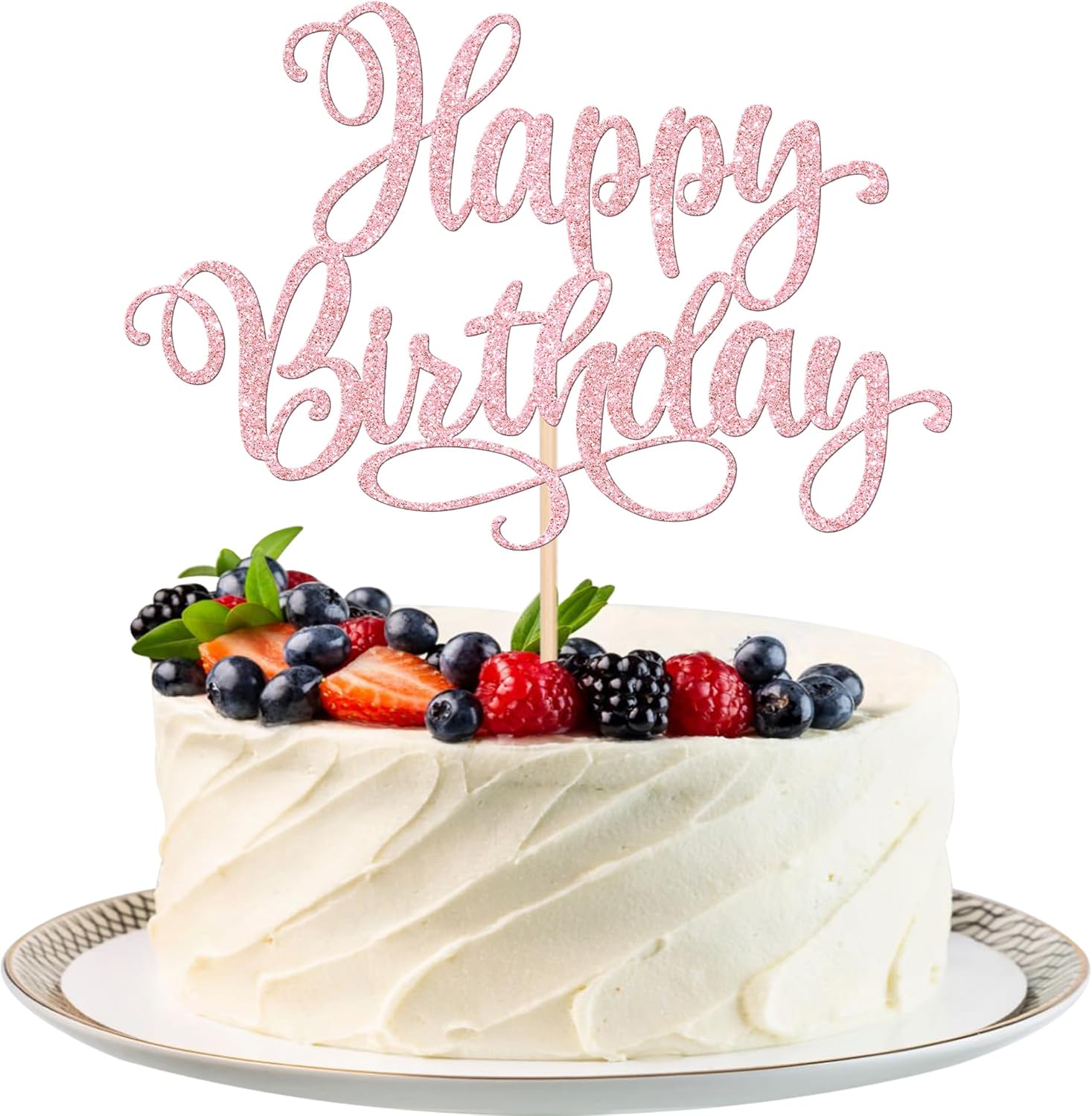 1 PCS Happy Birthday Cake Topper Glitter Happy Birthday Cake Pick Bunting Decor for Anniversary Celebrating Happy Birthday Party Cake Decorations Supplies Light Pink