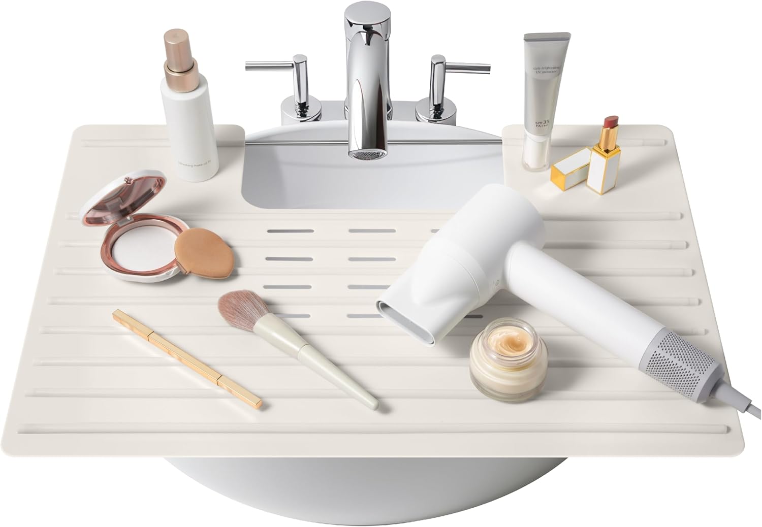 - Expanded Counter Space: Enhance your bathroom organization with this silicone sink topper bathroom sink cover, designed to create additional space for your cosmetics. Its silicone ridges prevent items like mascara from rolling away