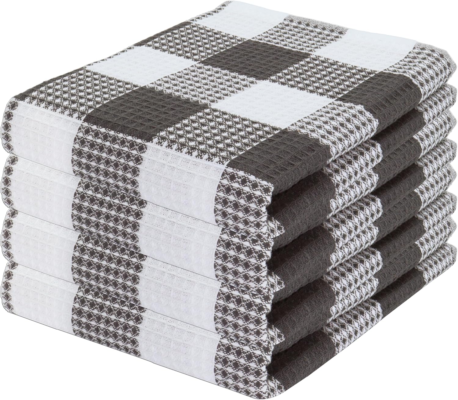PurpleEssences 100% Cotton Waffle Weave Check Plaid Kitchen Towels, Super Soft and Absorbent Dish Towels for Drying Dishes 15 x 25-4 Pack - Spring Summer - Steel Grey and White