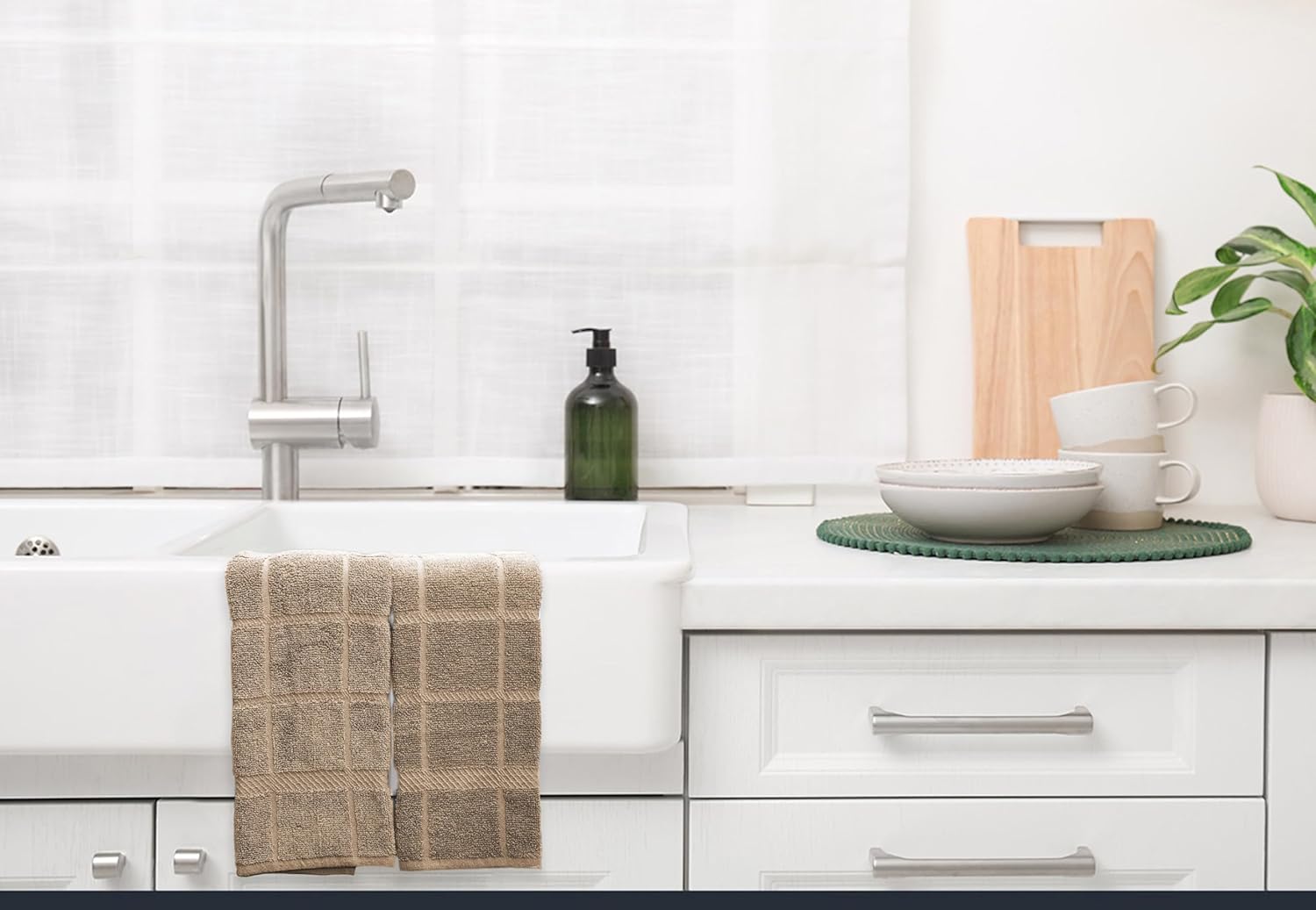 - Mellow buff dishcloths and dishtowels are made of 100% cotton with supreme quality and exquisite workmanship. Designs are simple, perfect size and it will give the feeling of being home by co-ordinating with most kitchen decor.
