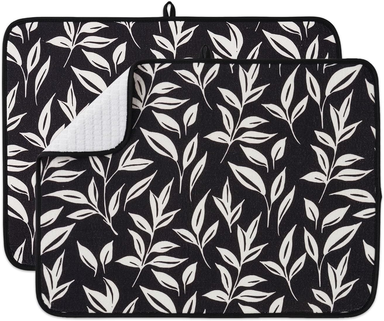 FRESHMINT Printed Dish Drying Mats for Kitchen Counter 2 Pack Absorbent Reversible Drying Mats Microfiber Kitchen Countertop Protector Dishes Drying Pad Extra Large 18"x24" Dish Mat