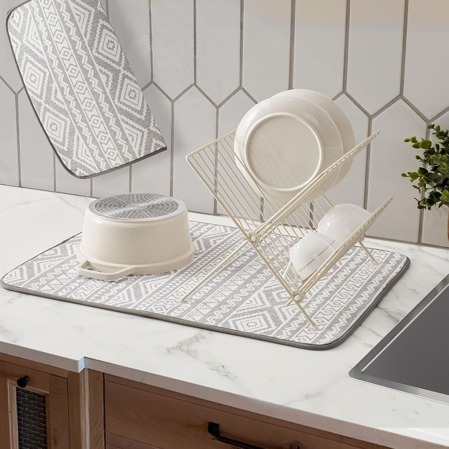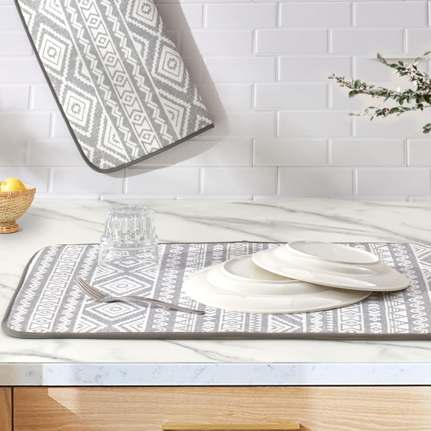 FRESHMINT Printed Dish Drying Mats for Kitchen Counter 2 Pack Absorbent Reversible Drying Mats Microfiber Kitchen Countertop Protector Dishes Drying Pad Extra Large 18"x24" Dish Mat