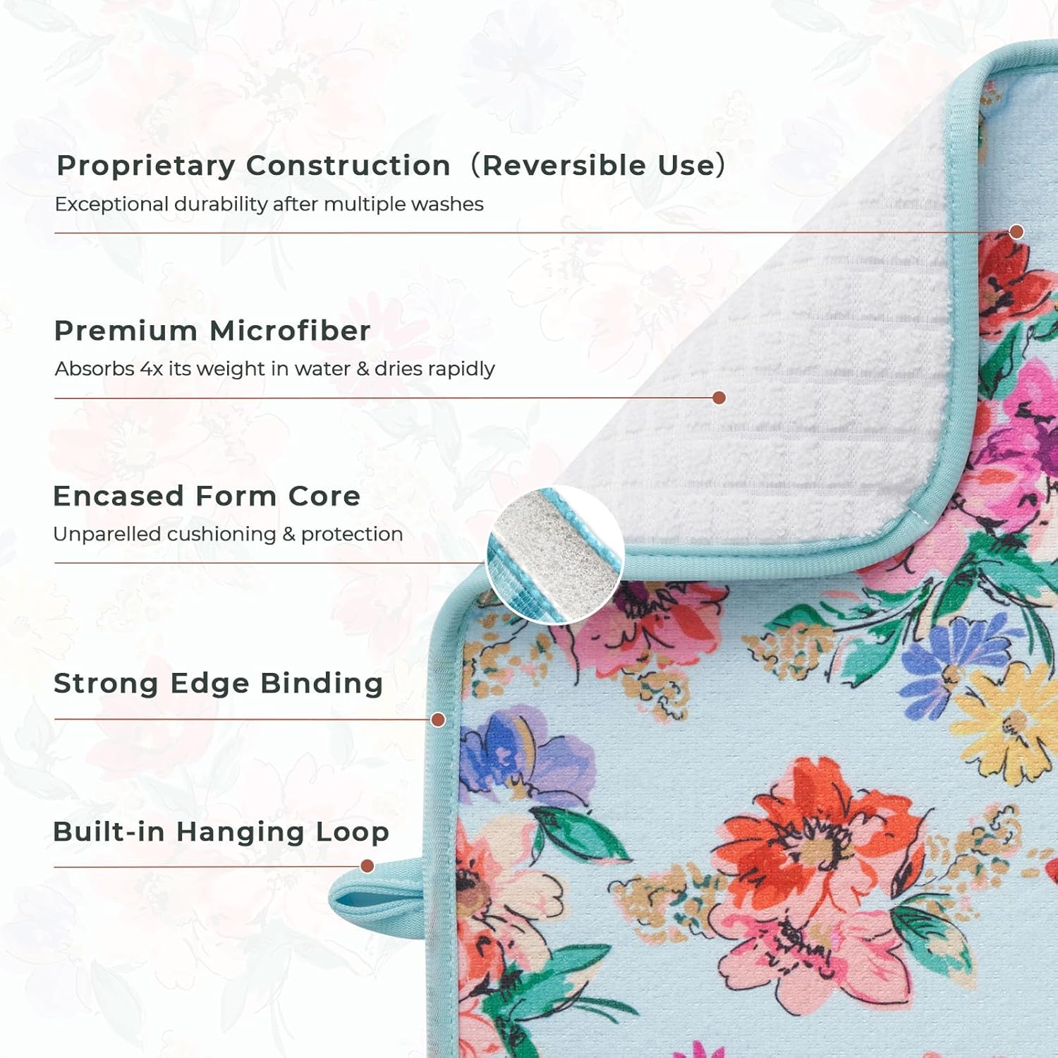 - 【Quick Absorption】This microfiber dish mat features a 3-ply design that can rapidly absorb up to 4 times its weight in water. It combines a layer of fast-drying composite sponge between two highly absorbent and durable layers of microfiber, effectively addressing the issue of dampness after dishwashing and helping to maintain tidy countertops.