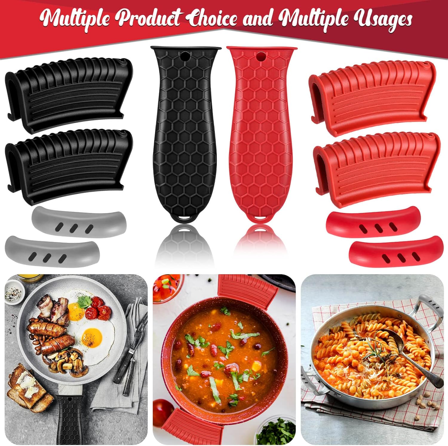 8 Pcs Cast Iron Handle Cover, Silicone Hot Handle Holder, Heat Resistant Cast Iron Skillet Covers Potholder for Frying Pans and Griddles Kitchen Supplies