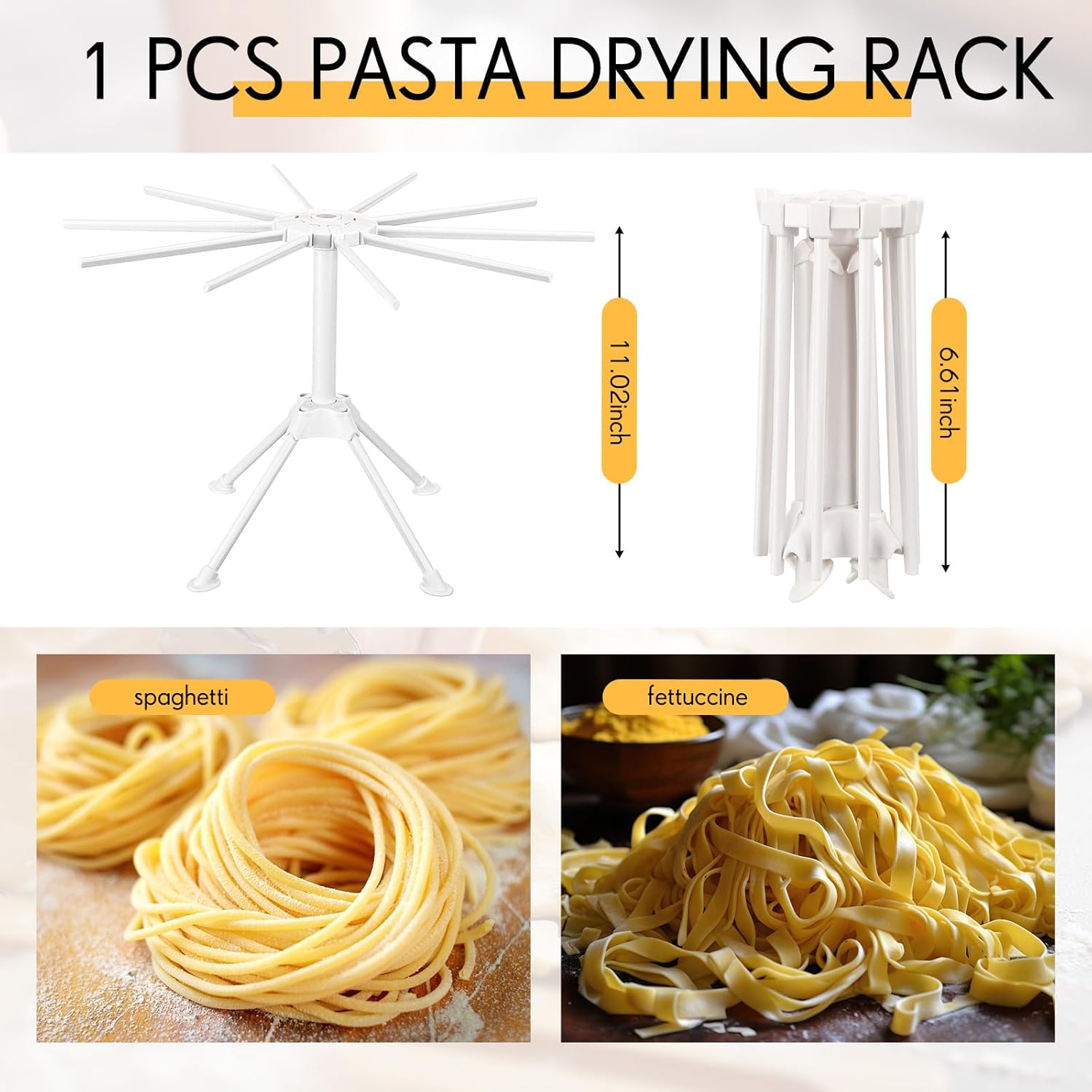 - Stable and Practical Pasta Drying Rack: our noodle drying rack is made of plastic, safe and reliable, enhances your cooking experience with its stability, provided by 4 robust rubber feet, and 10 extended arms can hang more noodles, ensuring that your pasta is completely dry and avoid clumps