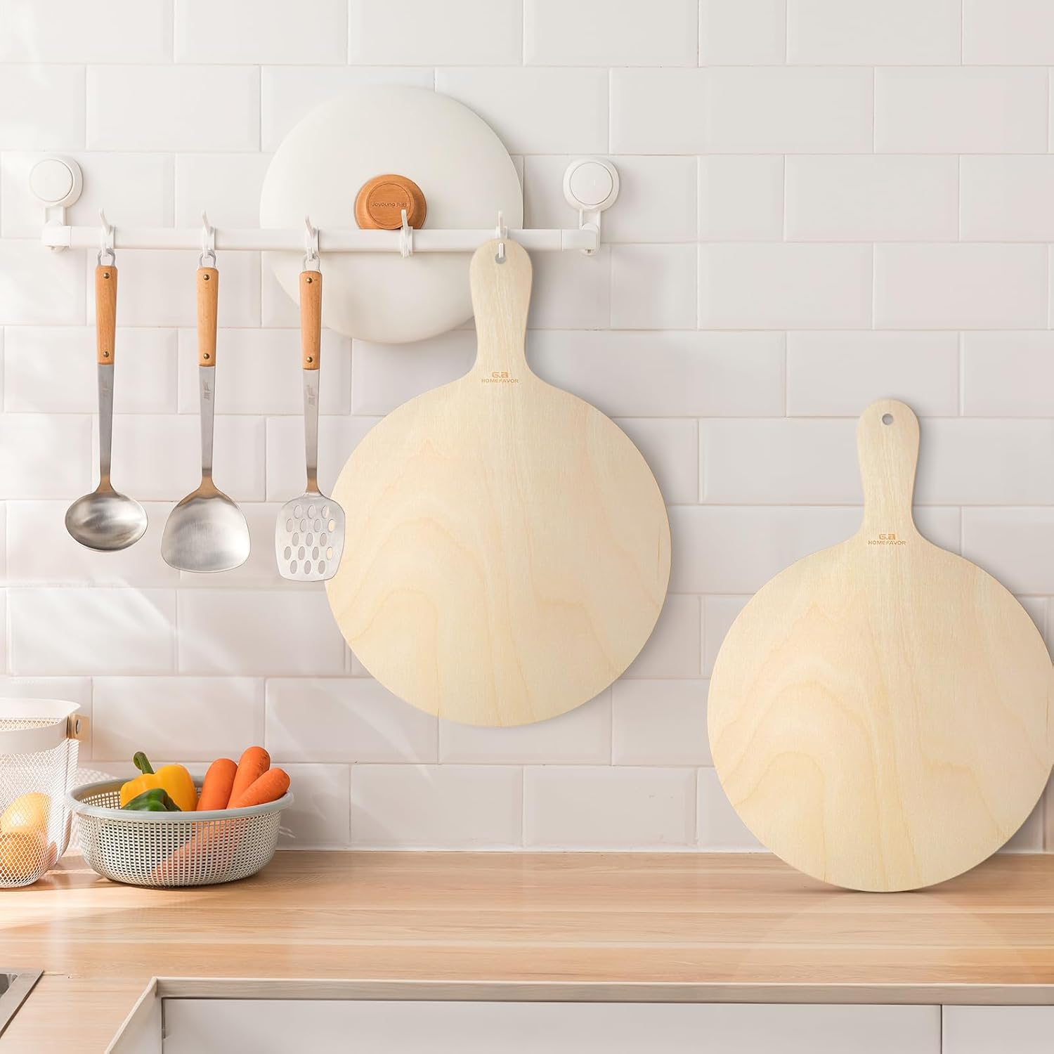 G.a HOMEFAVOR 2-Piece Wooden Pizza Peel: 12 Inch Pizza Spatula with Wood Handle Suitable for 12"x12" Pizzas - Large Cutting Board for Transferring Pizza in Oven