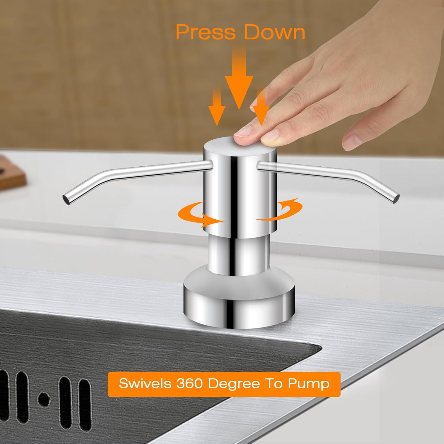 Sink Soap Dispenser for Kitchen Sink, Countertop Built in Sink Soap Dispenser with 47” Extension Tube kit, No Need to Fill The Little Bottle Again (Chrome)