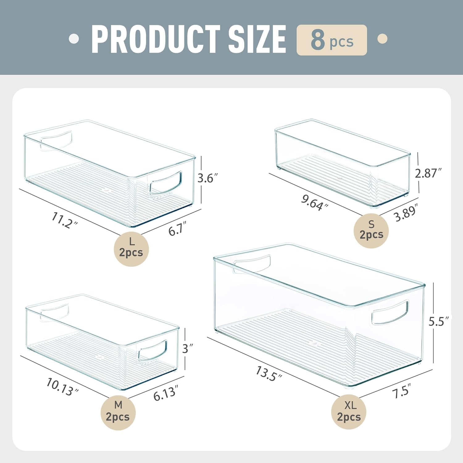 - EXTRA LATGE SIZE - XL size measures 13.5"L x 7.5"W x 5.5"H, organizer bins are great to organize deep things in deep freezer and chest freezer.