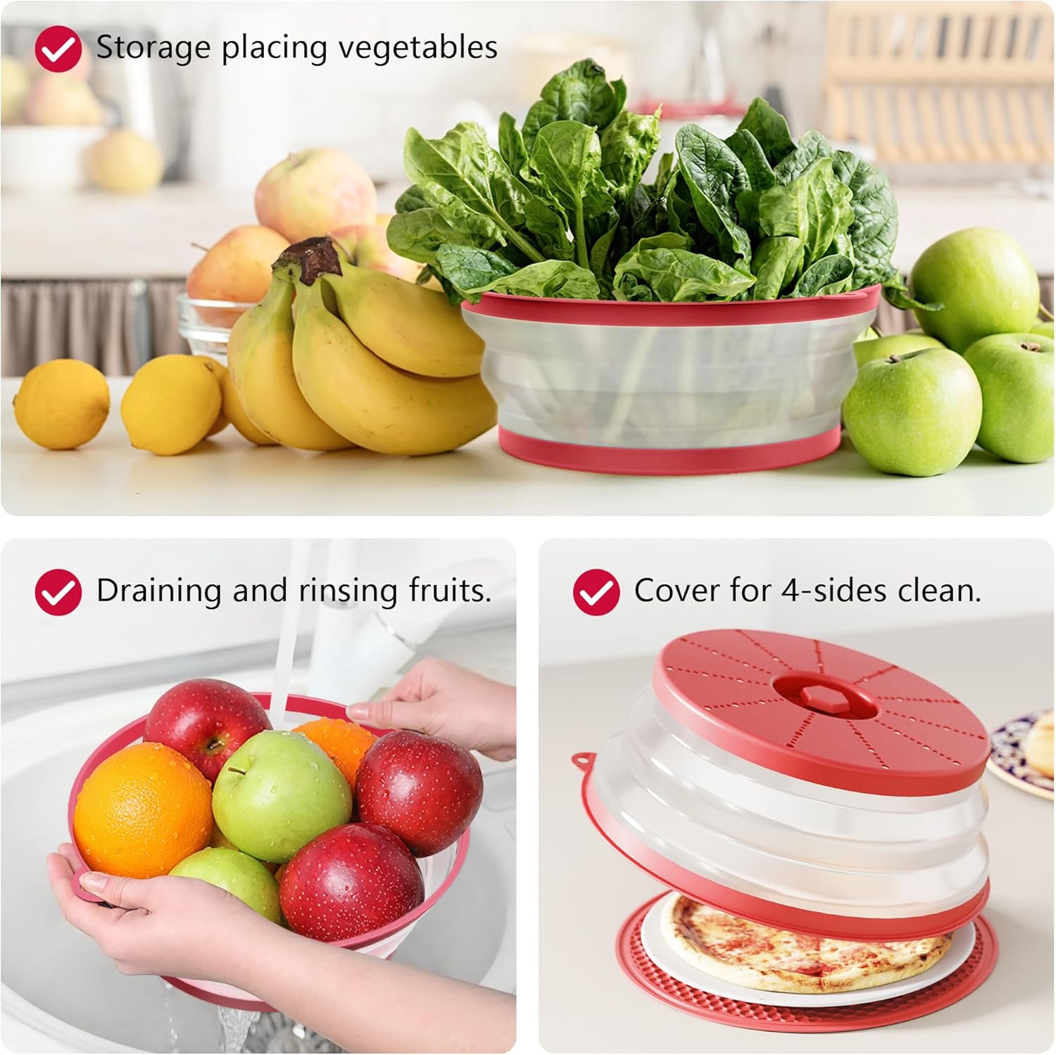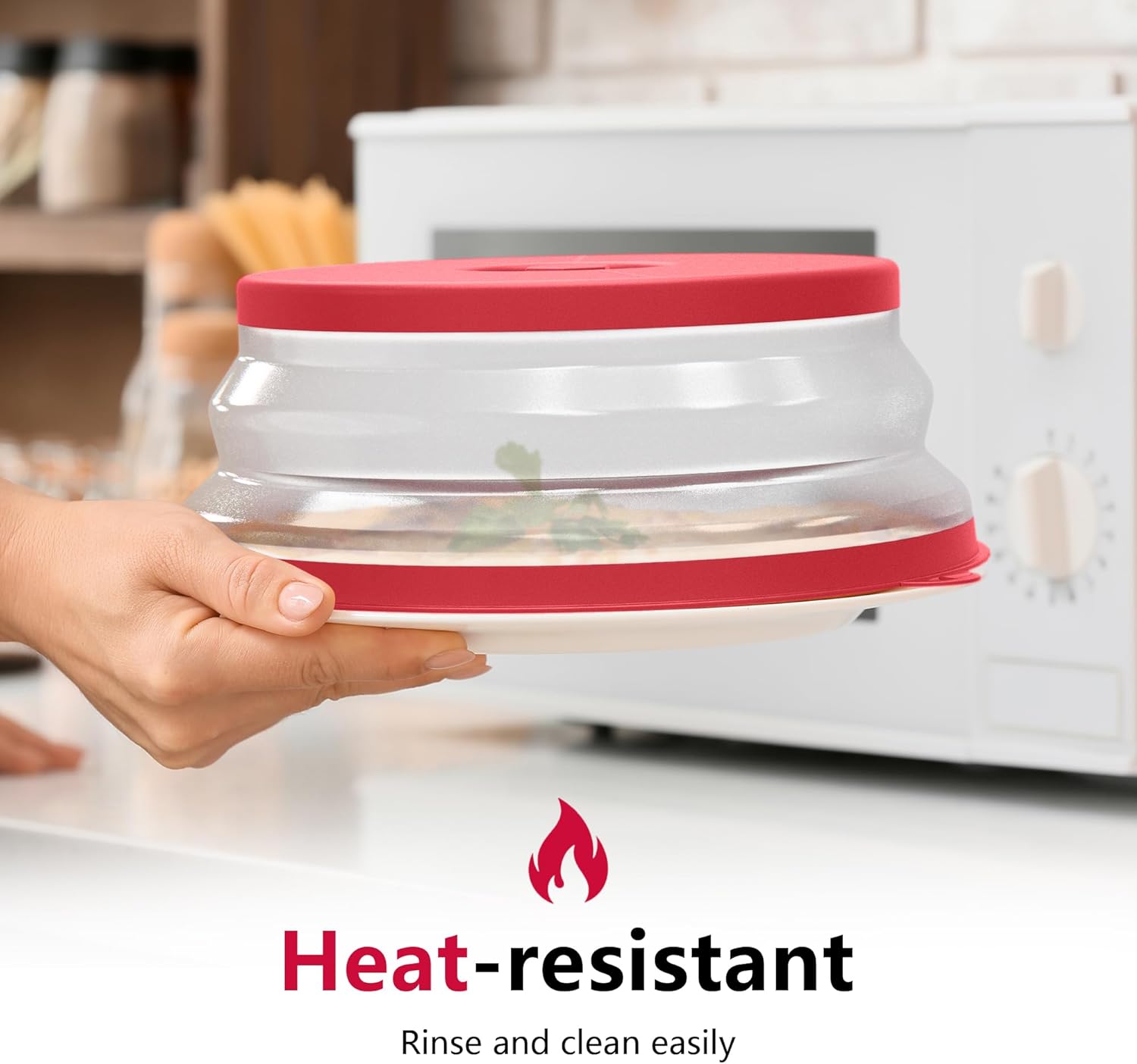 - Easy to Store: The foldable microwave splatter cover pops up to 3.2 inches to cover tall plates, food stacks, and shallow bowls. It also folds down to 0.72 inches when not in use. And features a hook hole for easy storage, saving you more space.