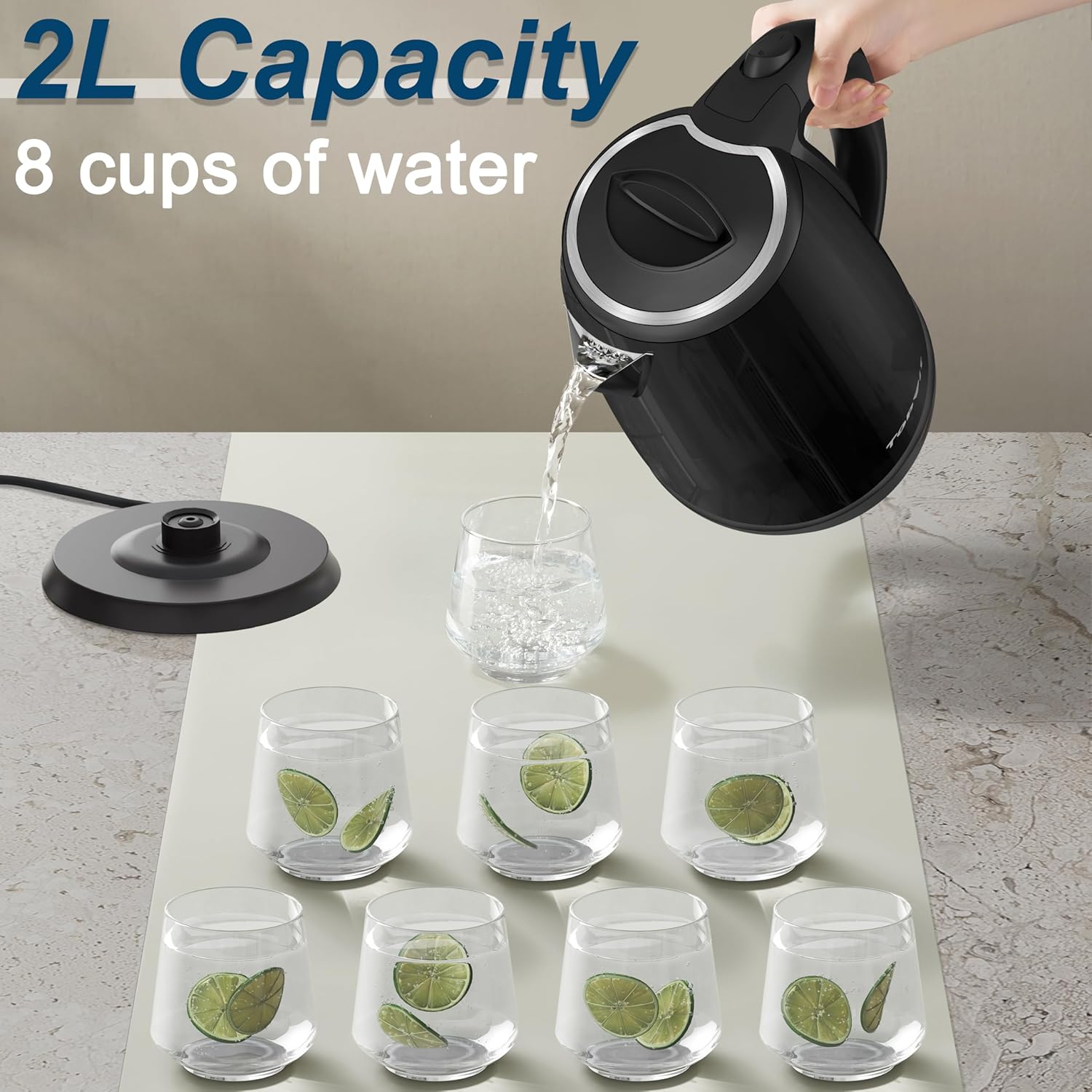 TOPWIT Electric Kettle, 2.0L Hot Water Kettle Electric, BPA-Free Stainless Steel Tea Kettle, Electric Kettles for Boiling Water with Fast Boil, Auto Shut-Off & Boil Dry Protection, Black