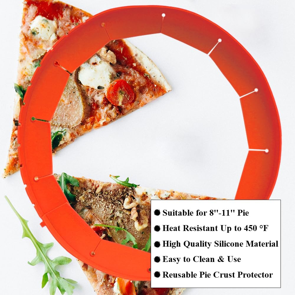 - Heat Resistant Pie Rings for Crust Adjustable: The silicone pie protector can resist heat up to 450 Β°F which can be perfectly used at extremely high cooking temperatures. The kitchen silicone protector can be adjusted in size to fit 8 inches to 11.4 inches pie or pizza