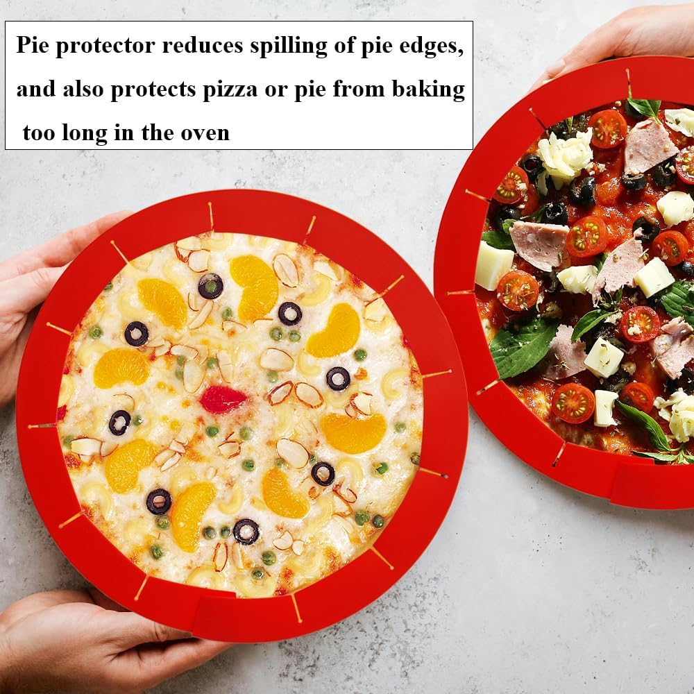 - Heat Resistant Pie Rings for Crust Adjustable: The silicone pie protector can resist heat up to 450 Β°F which can be perfectly used at extremely high cooking temperatures. The kitchen silicone protector can be adjusted in size to fit 8 inches to 11.4 inches pie or pizza