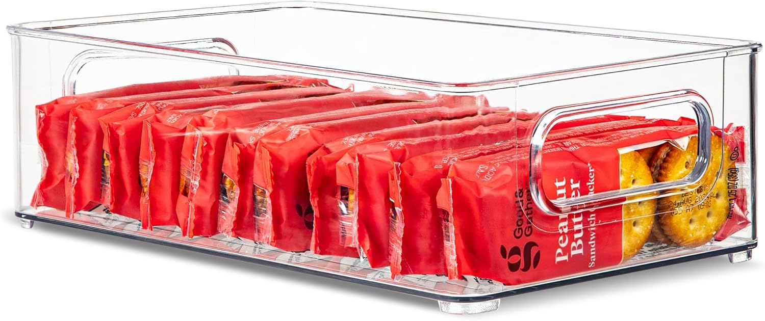 Plastic Food Storage Clear Container Bin with Handles for Organizing Kitchen, Pantry, Refrigerator, Freezer, Pantry, Cabinet, Closet, Bathroom. Stackable 10”x6”x3”