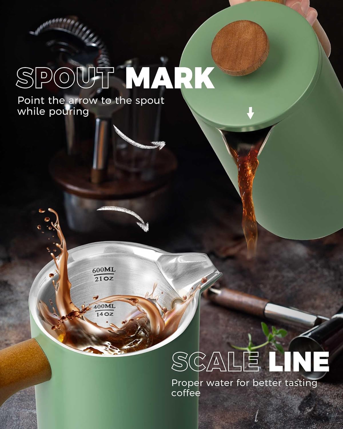 - THERMAL INSULATION: The double-walled vacuum layer construction of the french press keeps coffee hot for longer while ensuring the exterior remains cool to the touch. The spout indicator on the lid helps identify if the spout is closed to maintain coffee temperature.