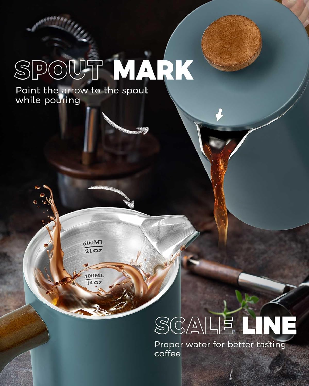 - KITCHEN GRADE STAINLESS STEEL MATERIAL: Crafted from high-quality stainless steel,the French Press is not only aesthetically pleasing with its sleek finish but also durable enough for both indoor and outdoor use. The 21 ounce capacity is suitable for different scenarios such as breakfast, working or camping.