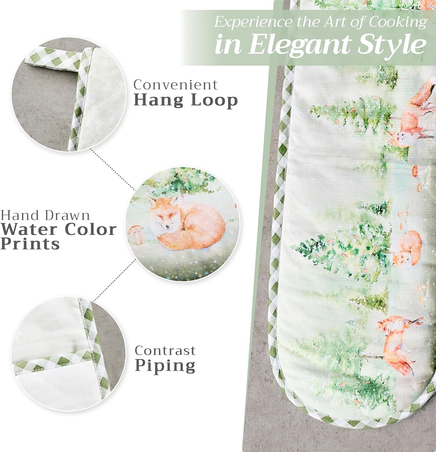 - Package includes: Includes 1 double oven mitt sized 7"x35". Perfect for handling hot cookware safely while adding a touch of European elegance to your kitchen. Designed in Europe and made in India with care