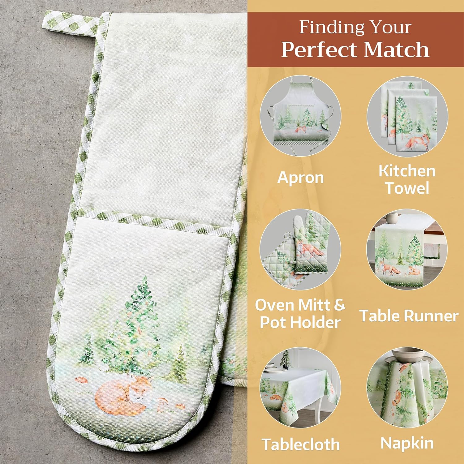 Maison d' Hermine Double Oven Mitts 100% Cotton 7"x35" Double Oven Mitt Heat Resistant BBQ Cooking Gloves with Loop, Baking, Grilling, Home, Kitchen, Handling Hot Pans (Winter Mornings)
