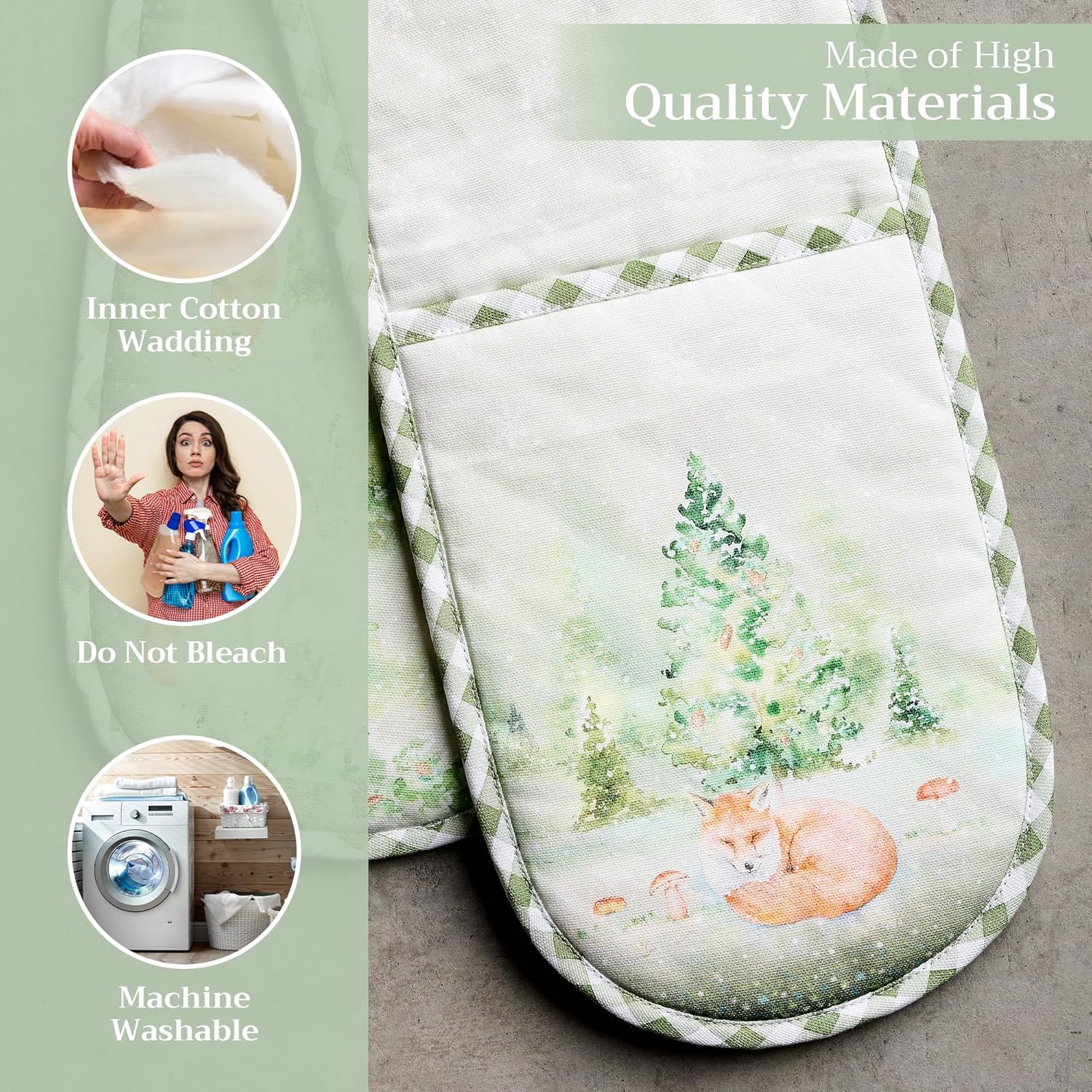 - 100% Quilted cotton: Crafted from premium quilted cotton for superior heat resistance and durability. This double oven mitt offers a soft, flexible grip and protects your hands during baking, roasting, or grilling