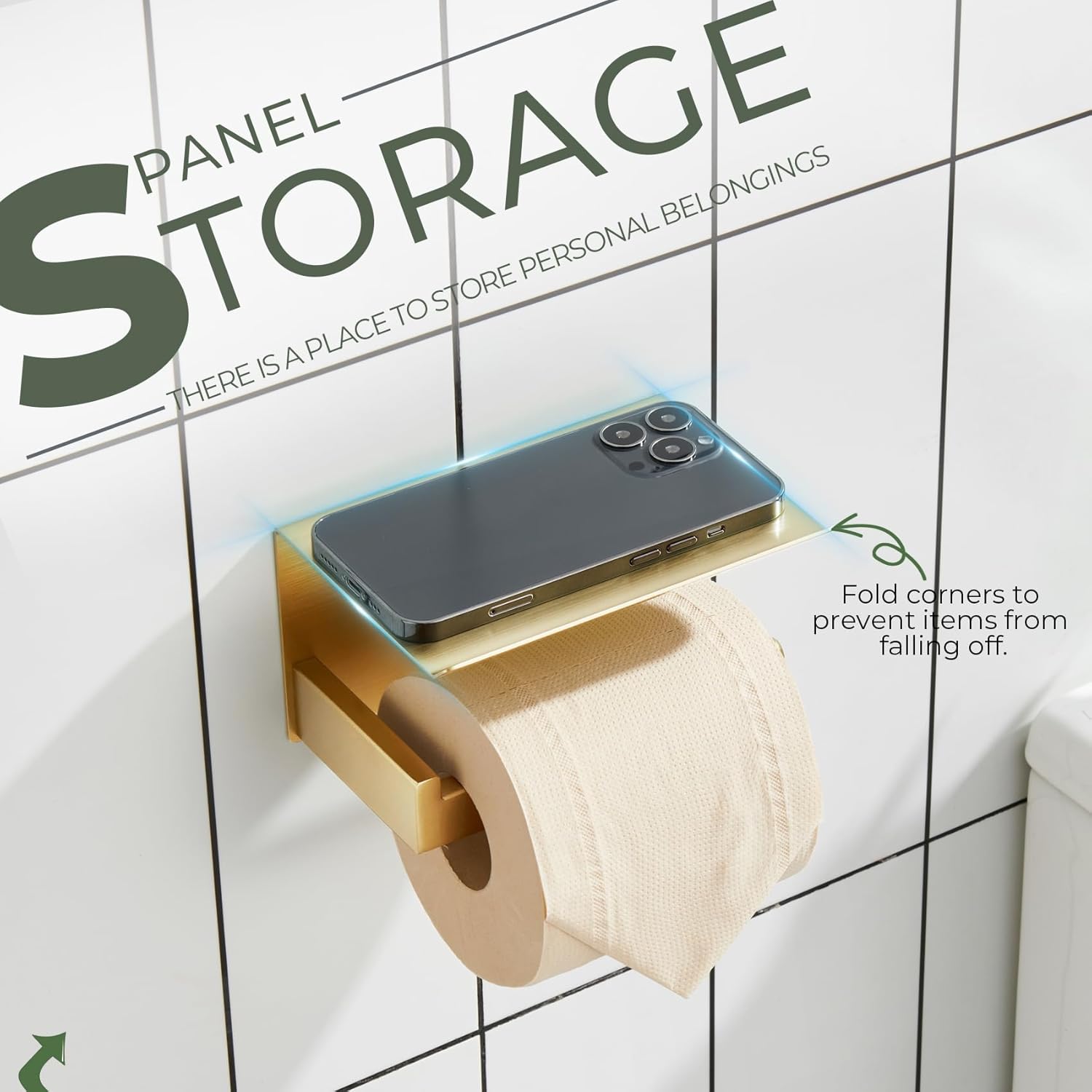 KOKOSIRI Toilet Paper Holder with Shelf Toilet Roll Holder for Bathroom Restroom T-304 Stainless Steel Wall Mounted, Gold Finish, B2010BG