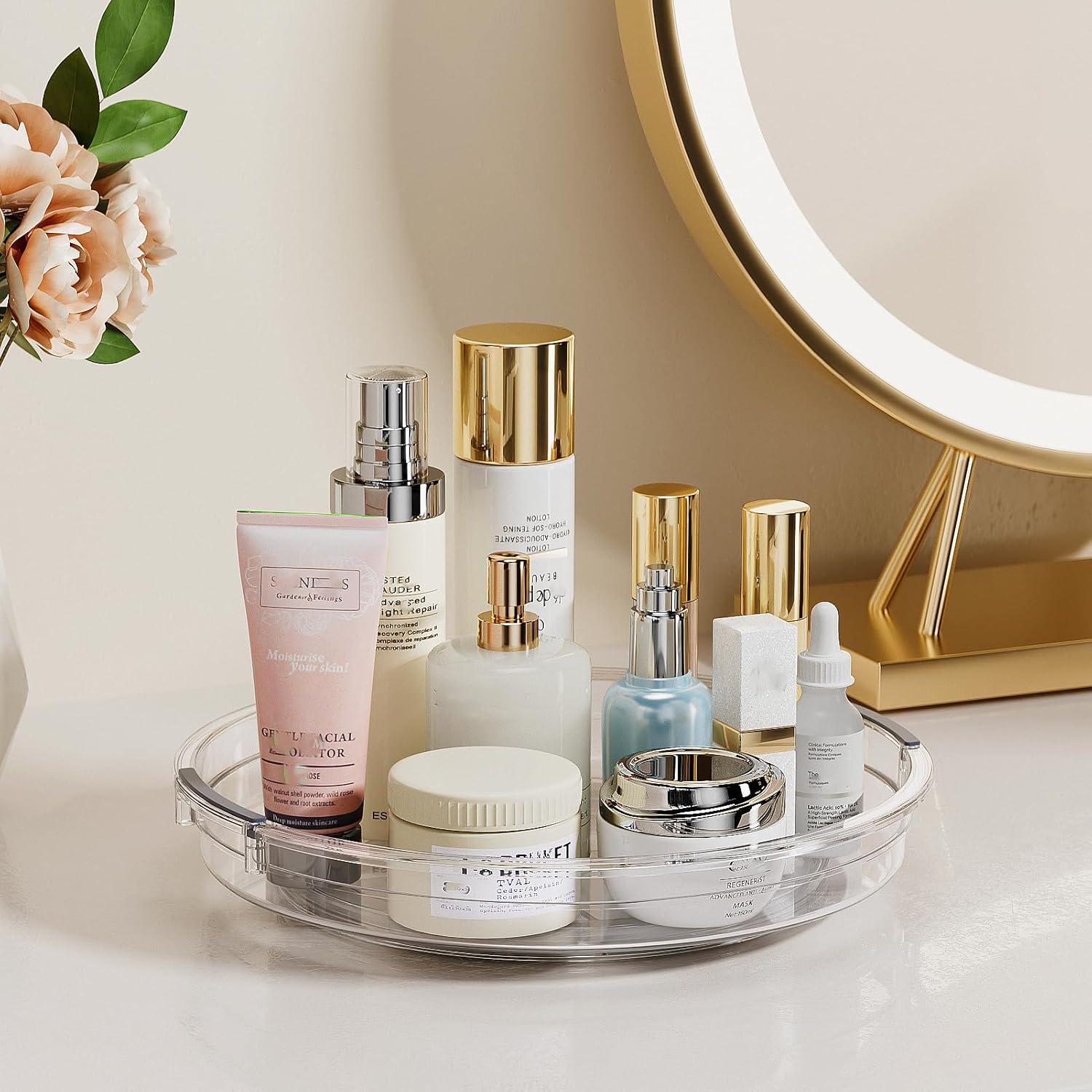 - Versatile Use and Space Saving: This Lazy Susan turntable is great for cabinet, kitchen countertop, fridge and pantry organizers and storage spices, condiments, snacks, cans, it's also a medicine cabinet organizer, bathroom makeup perfume spinning organizer. Elevates the functionality and efficiency of every space