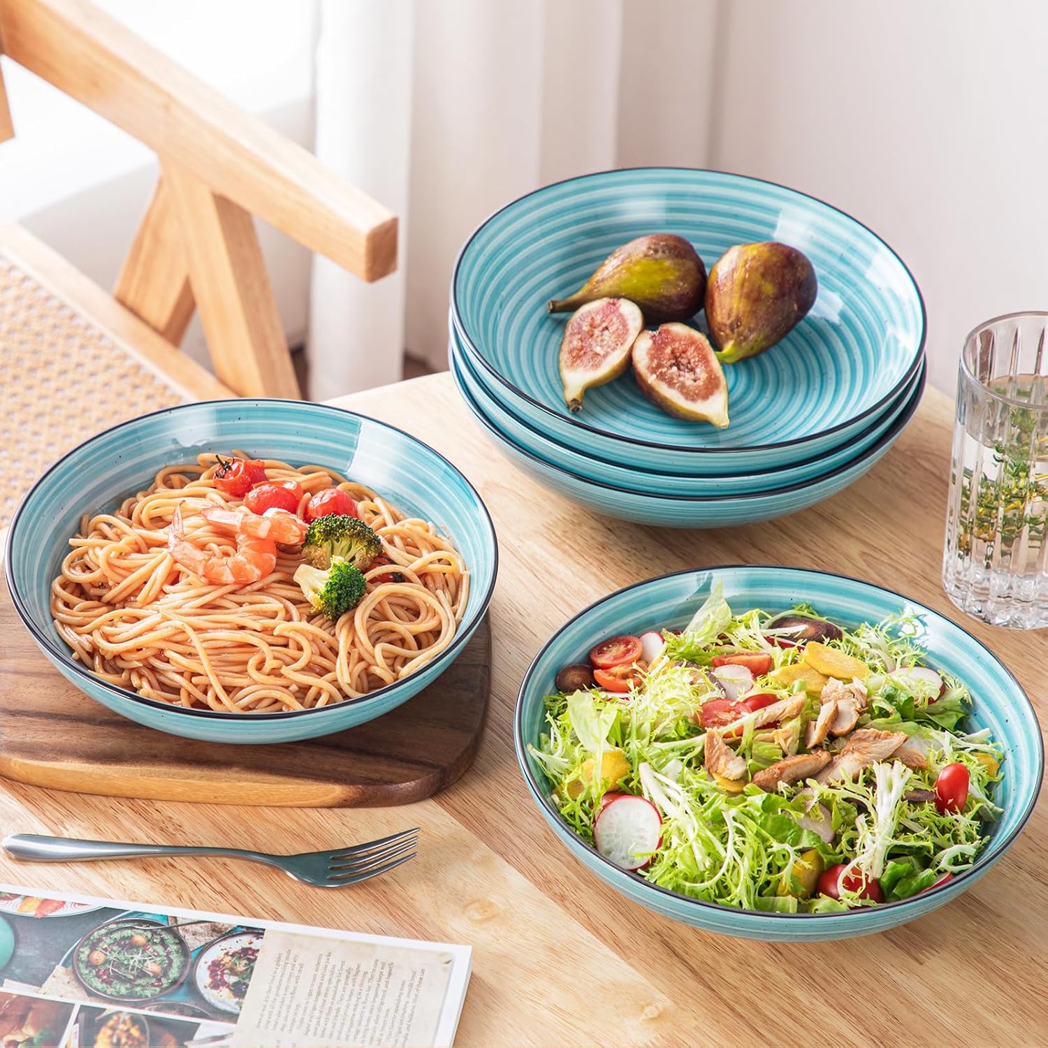 vancasso Bonbon Large Pasta Bowls Set of 6, 50 Oz Ceramic Salad Bowls, Wide and Shallow Bowls Set, Large Serving Bowls for Kitchen, Blue