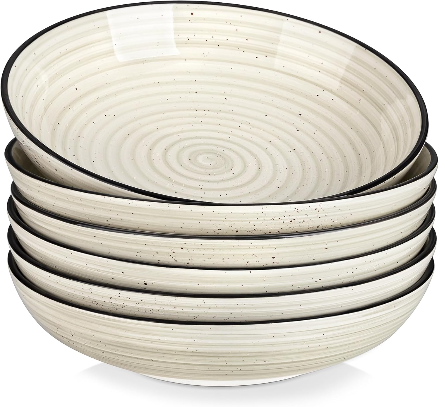vancasso Bonbon Large Pasta Bowls Set of 6, 50 Oz Ceramic Salad Bowls, Wide and Shallow Bowls Set, Large Serving Bowls for Kitchen, Beige
