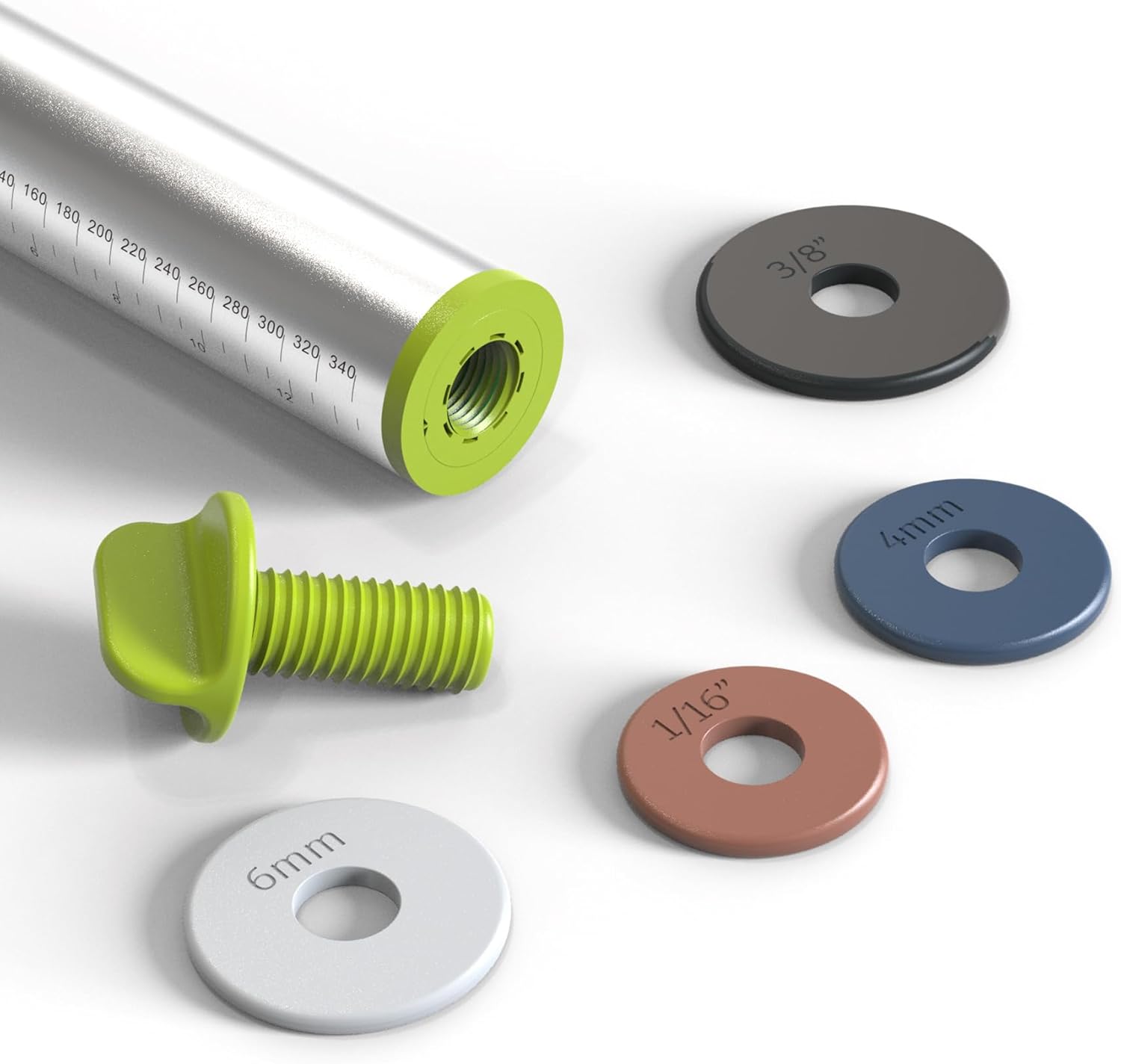 - 🥯【4 THICKNESS RINGS AND WOODEN STAND】 Featuring rings with different diameters of 1/16" (2 mm), 1/6" (4 mm), 1/4" (6 mm), and 3/8" (10 mm) allow the rolling pin to be substituted for different dough heights, and can accommodate your ideal dough thickness; The wooden stand fits the rolling pin and prevents it from being damaged by unintentional rolling.