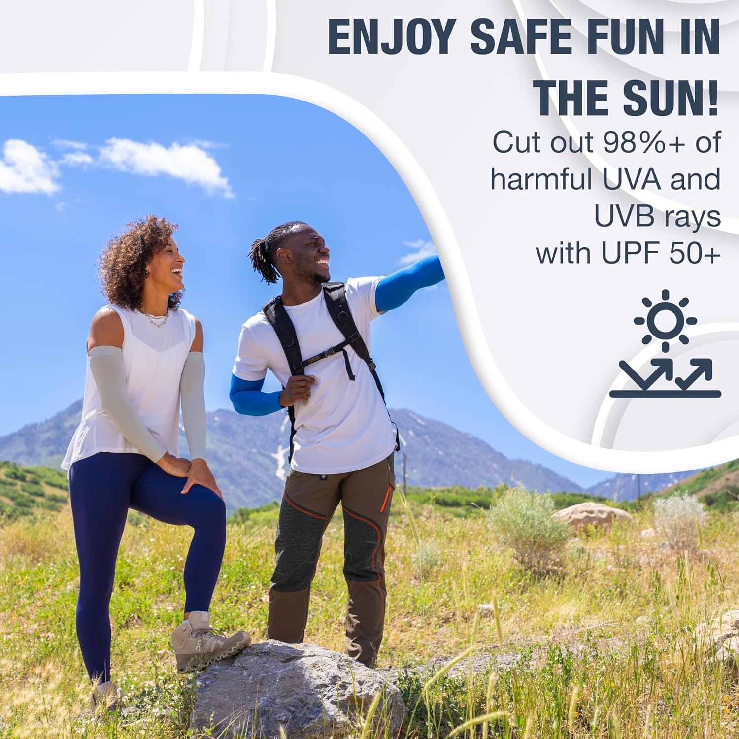 - Superior upf 50+ premium anti slip arm sleeves – our innovative uv sleeves for men and women block over 98% of the sun’s harmful uva and uvb rays, offering full upf 50+ coverage. These sun sleeves for men and women are ideal for shielding yourself from the sun on hot days – whether you’re playing golf, basketball, baseball, volleyball, running, or cycling.