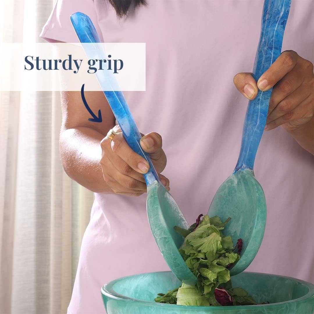 - [MULTIPURPOSE USE] - Our hand-poured resin small serving tongs or salad servers are versatile for tossing and serving salads, fruits, pasta, or vegetables. The serving spoon add a stylish twist to any kitchen. Perfect for parties, kitchen decor and accessories and an excellent gift choice for Christmas, Motherโs Day, birthdays, anniversaries, or housewarmings.