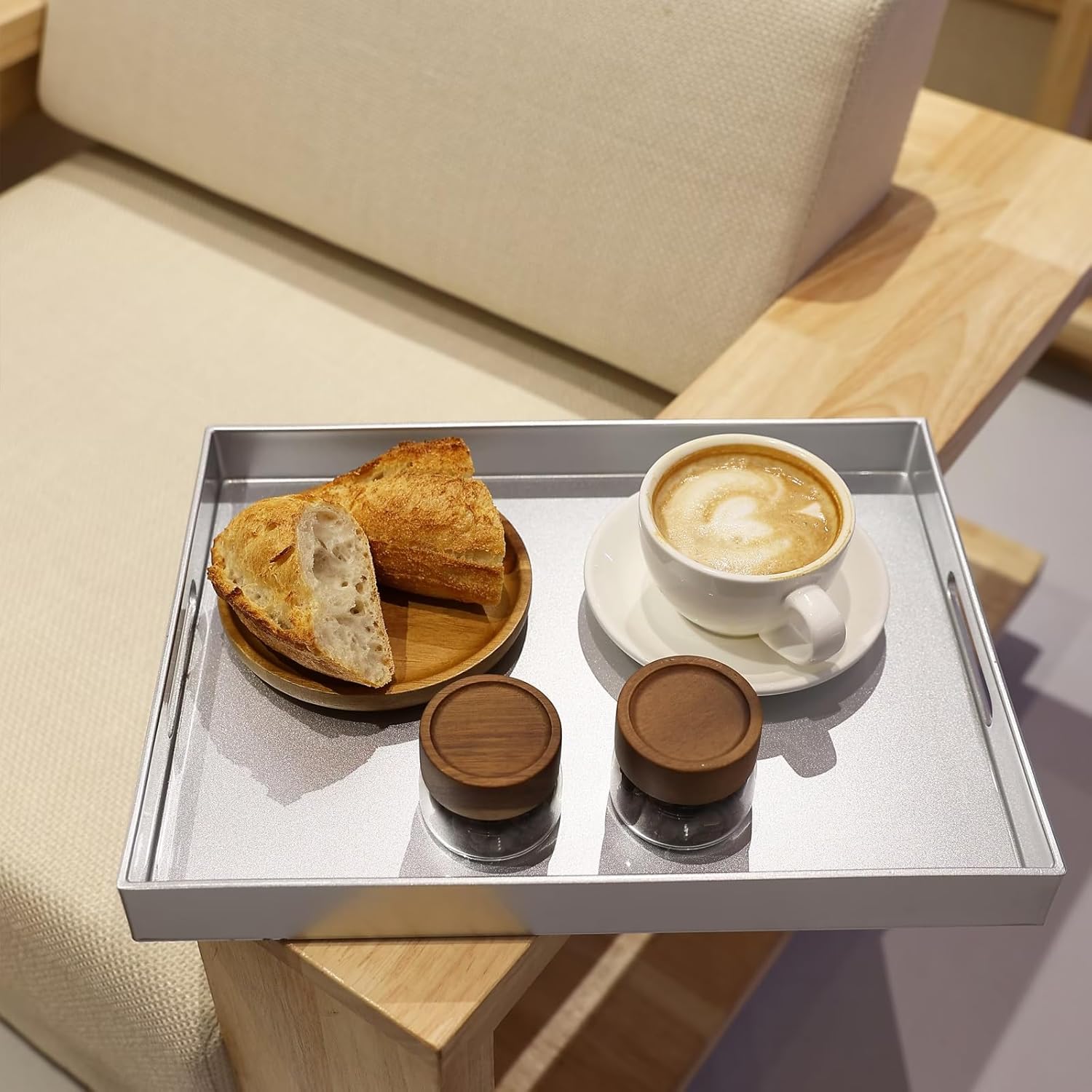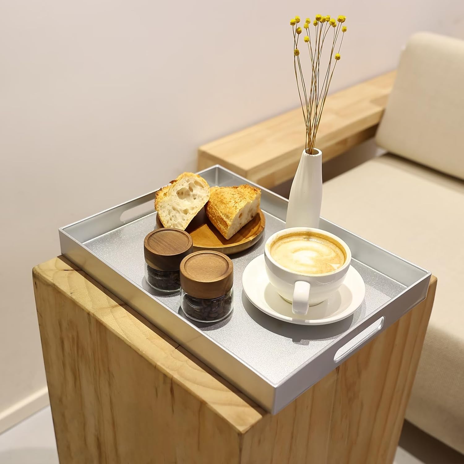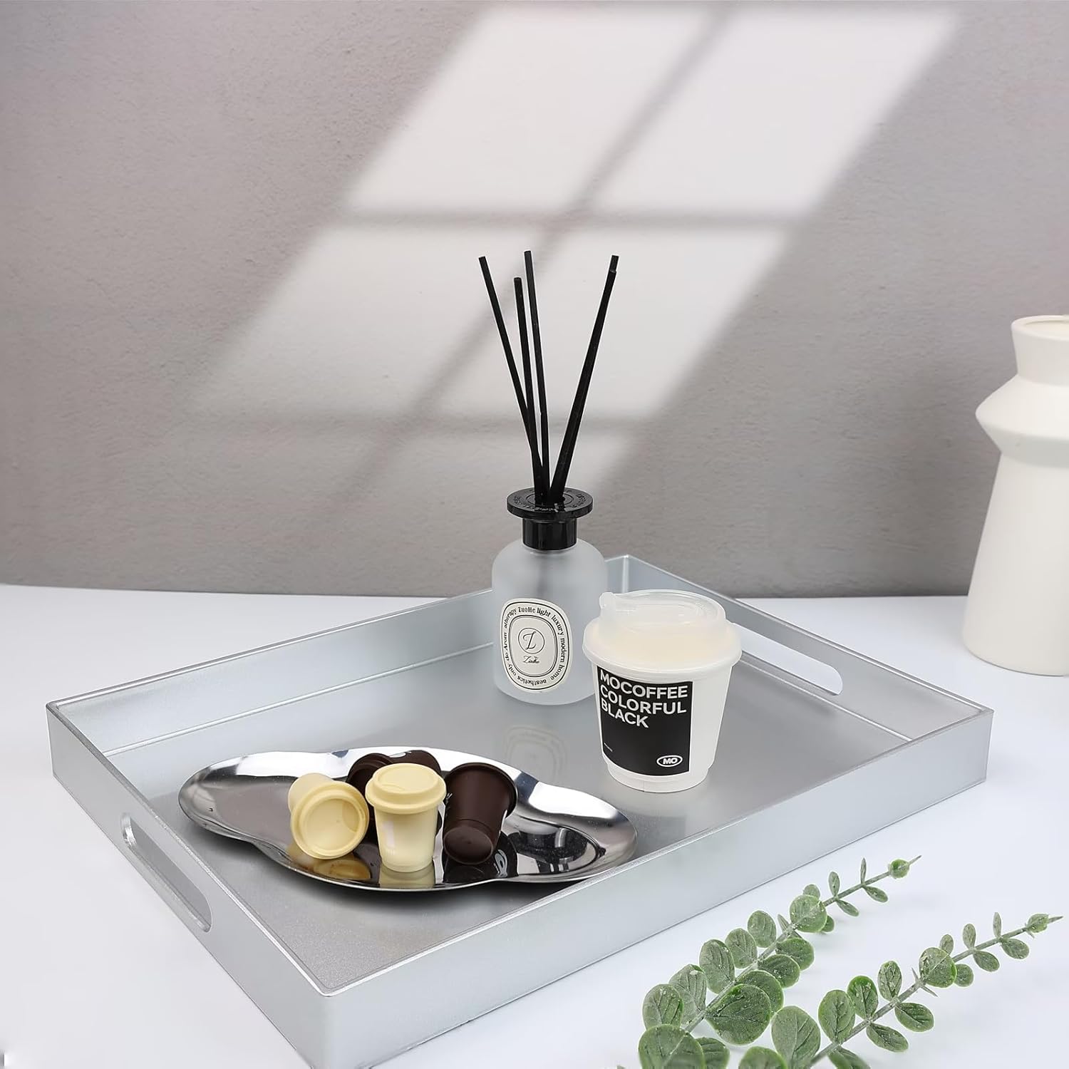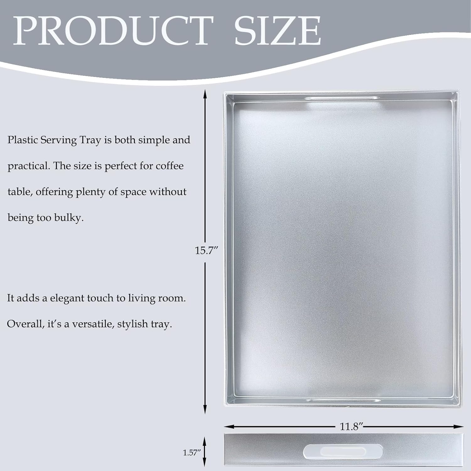 Spsyrine Silver Plastic Serving Tray for Ottoman, Coffee Table, Rectangle Decorative Tray for Entertaining, Outdoor, Living Room, Home Decor