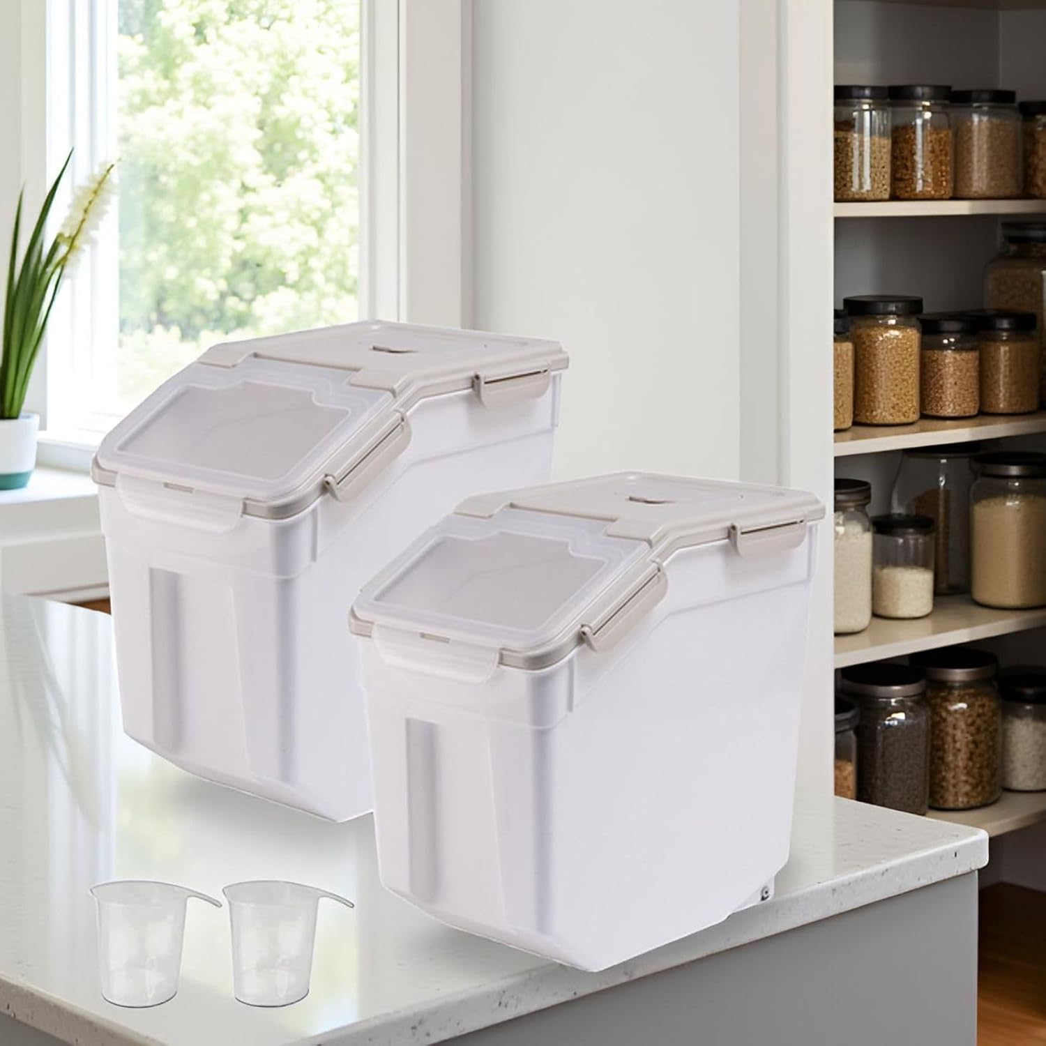 Airtight Flour Storage Container Bin 50lbs (2 Pack) - BPA Free Rice & Food Dispenser with Locking Lid, Measuring Cup & Scoop - Kitchen Pantry Organizer for Cereal, Grain, Pet Food (Grey)