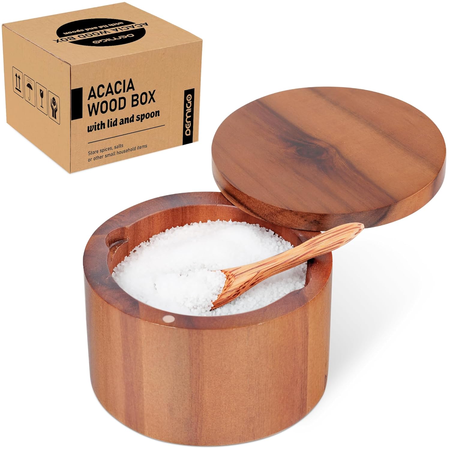 - Color : Acacia - Salt Box with Spoon