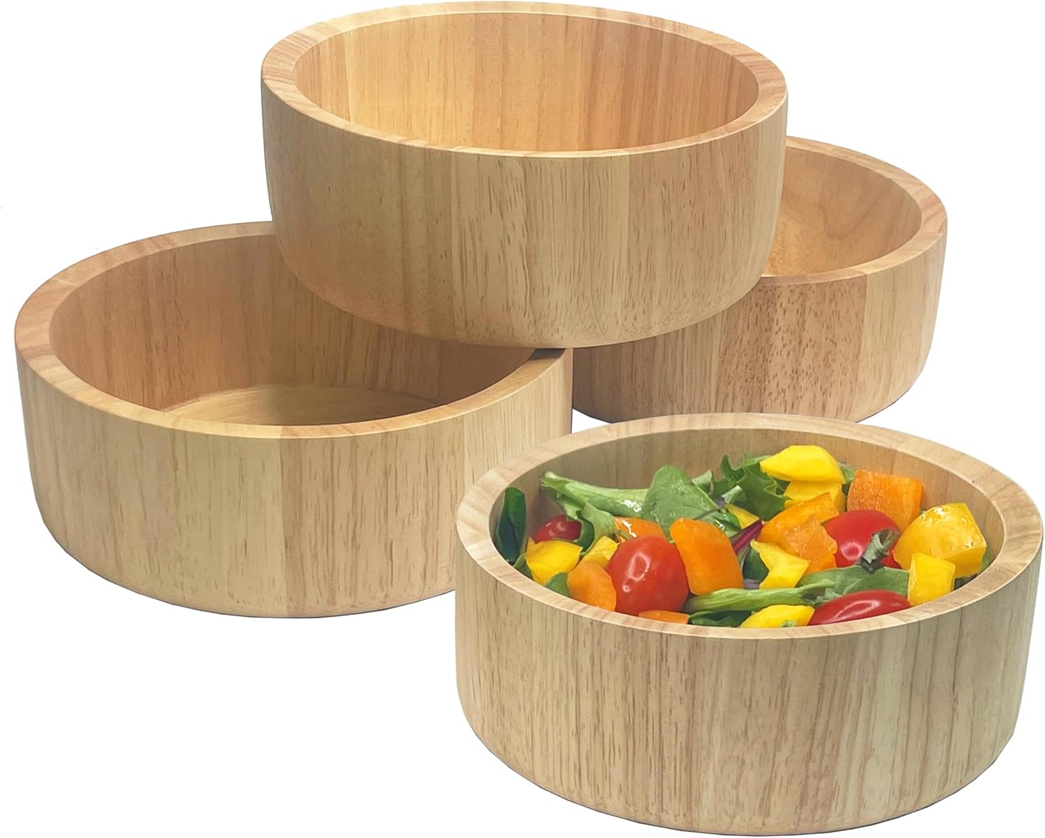 Woodard & Charles Set of 4 Wood Individual Salad Bowls, Snack Serving Bowls, 6 1/2" x 2 1/2"