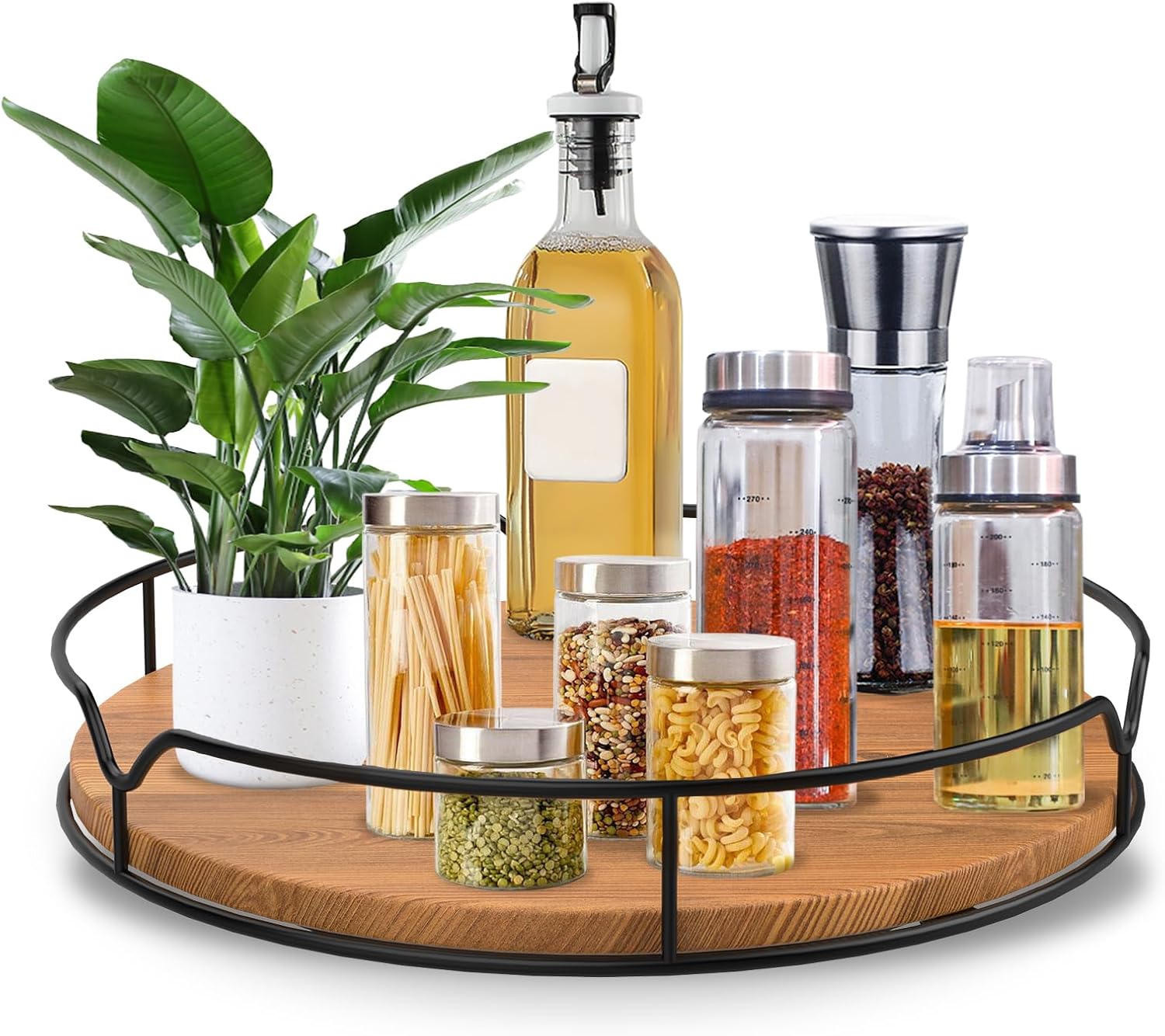 - Smooth 360° Spinning:Rotates in a circle for easy access to condiments, spices, seasonings, cans, cooking supplies smoothly and stably; built-in handles easy to grip and move