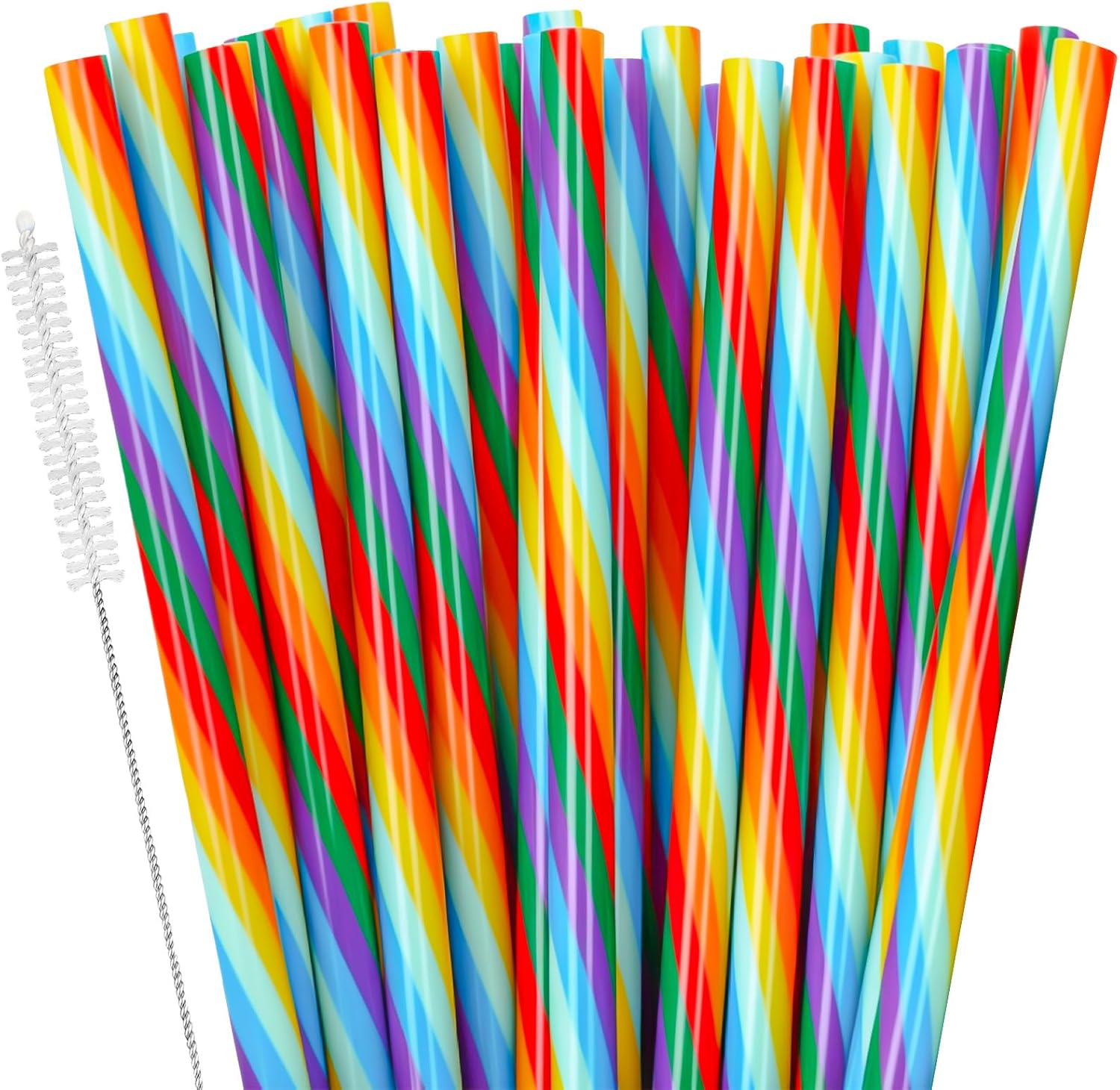 JANYUN 30 Pieces Rainbow Drinking Straws, 9inch Hard Platic Reusable Straws LGBT Gay Pride Colorful Rainbow Striped Straw for Pride Party Favors Decorations with Cleaning Brush