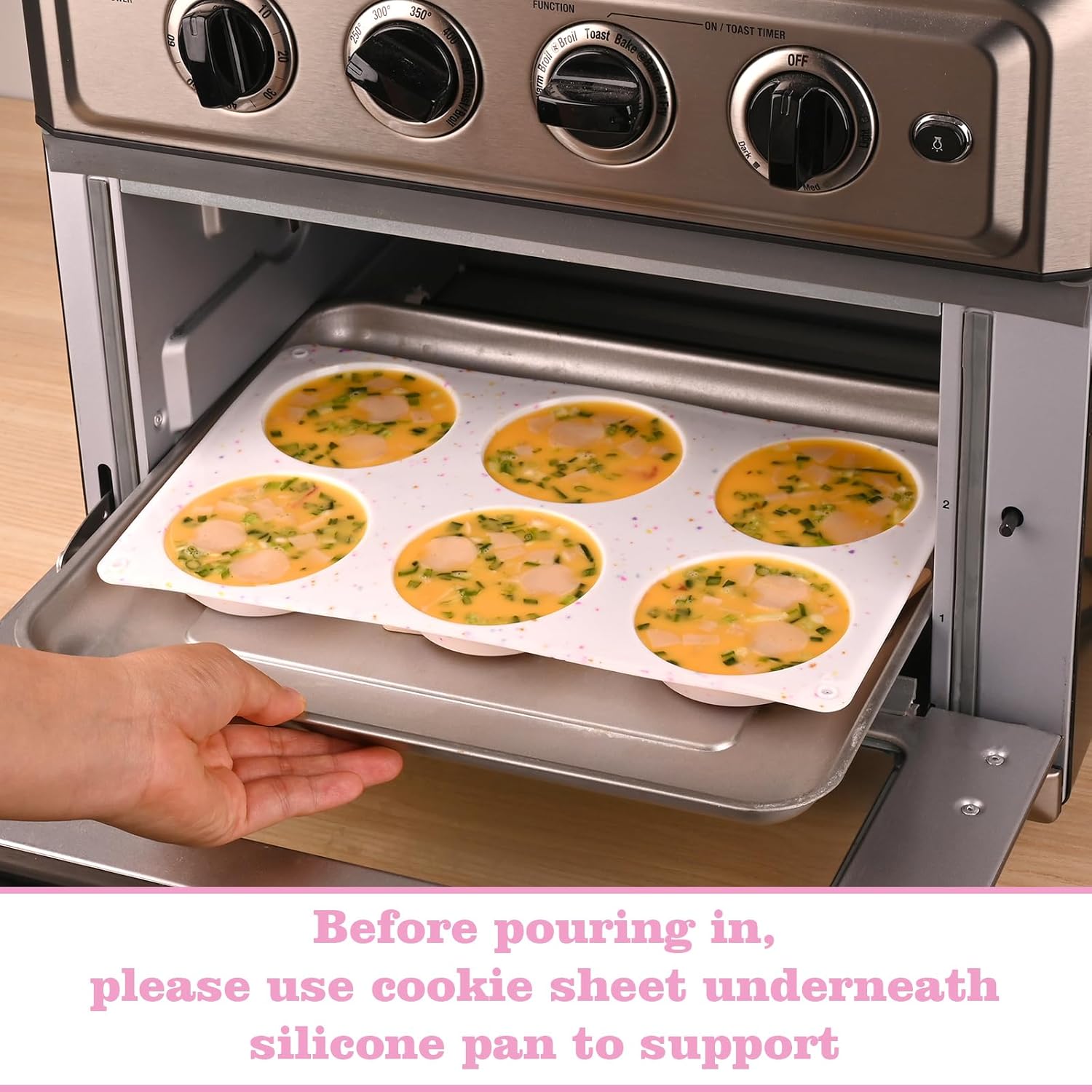 - EASY BAKING & RELEASE: Muffin top pans non stick surface and flexible, just pop out with pressed finger, easy to release. ( For a Better baking experience, it is recommended to spray a little layer of butter first, put a hard baking tray or sheet under these molds before filling them for easy transfer)