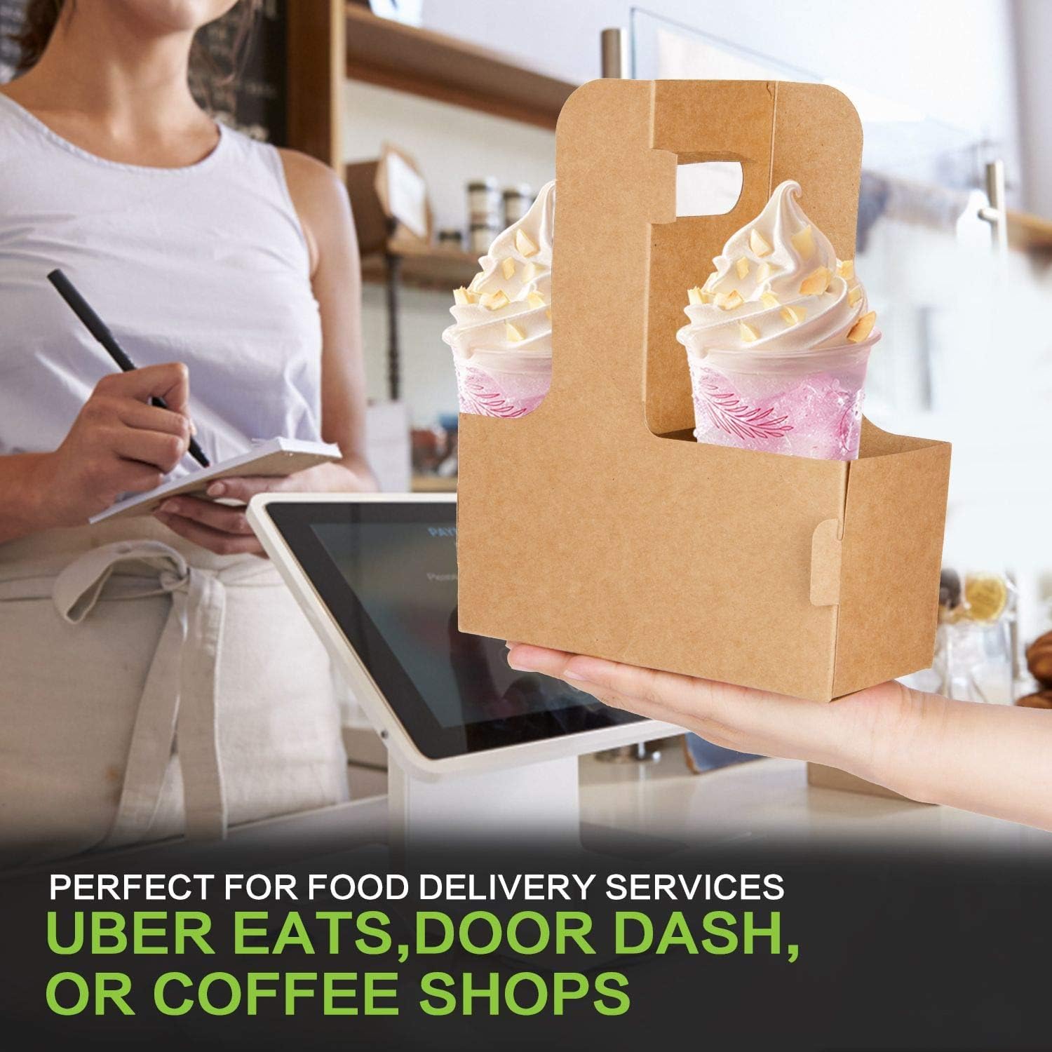 - Special Design: Our Kraft Drink carriers can be folded and assembled in a few minutes. 2 cup drink carrier with handle can also be assembled into four cup. Unique push-in fold the corner to secure any size cup to prevent it from sliding while delivery