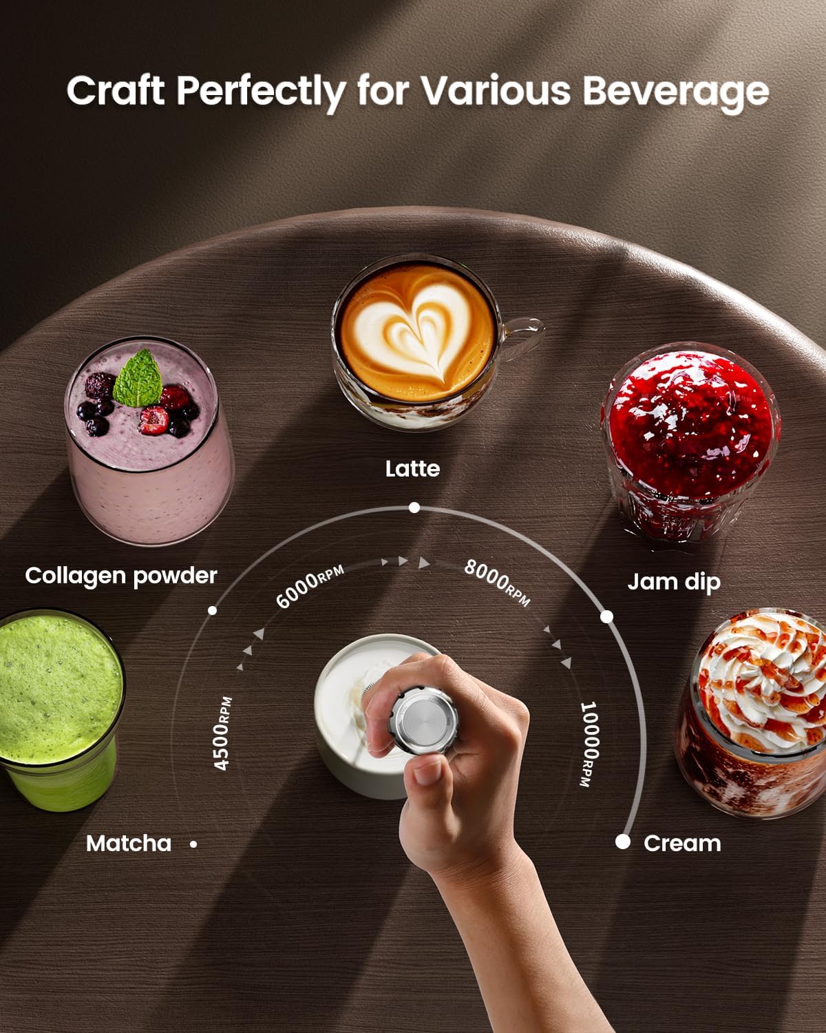 - 【World First & Game-changer in Frothing】 Experience the world's first Stepless Speed Control handheld milk frother! Easily adjust the rotary dial for perfect froth and tailored drinks. Precision meets versatility in your hands. Redefine your beverage game now