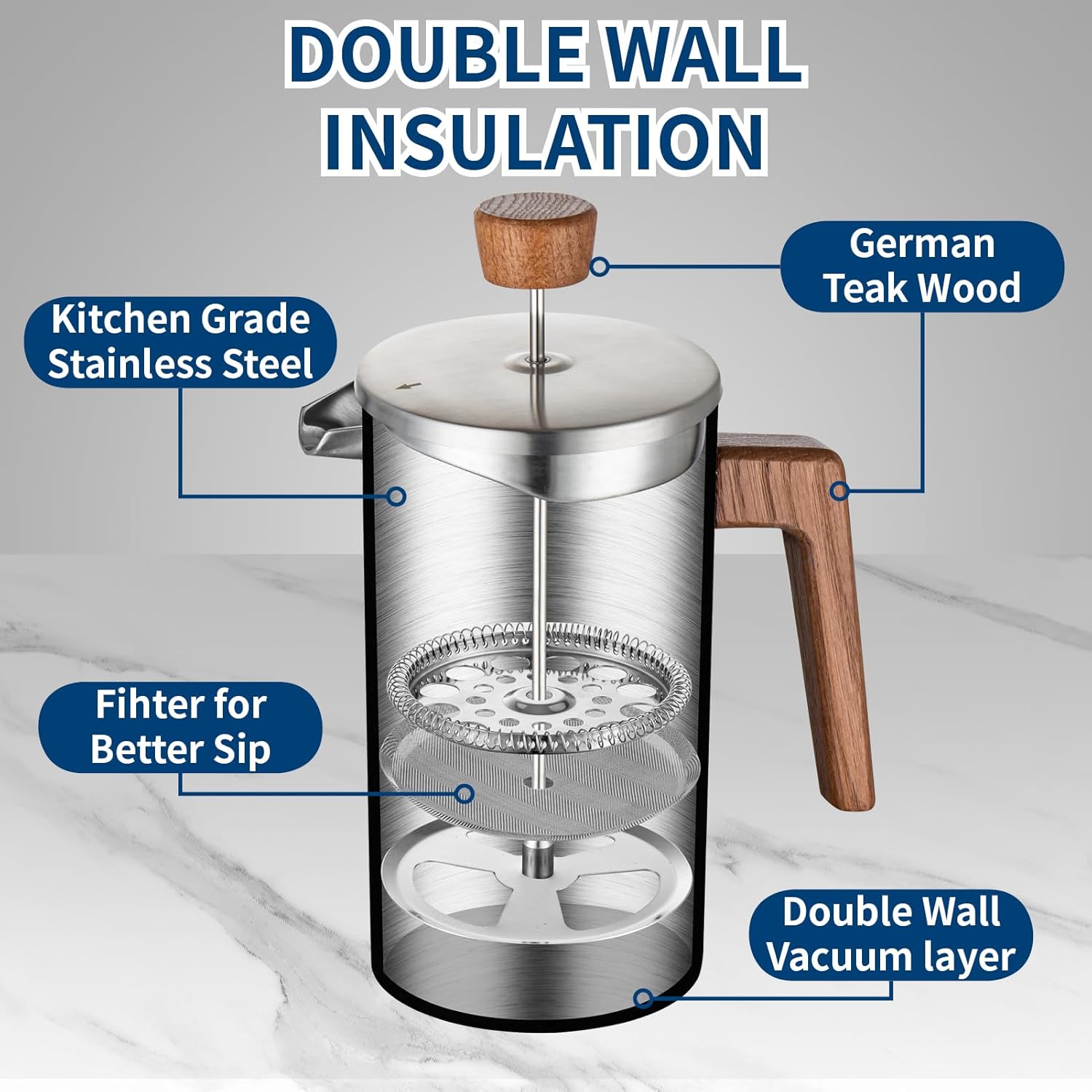 - Our double wall insulated french press keeps your coffee and tea warm,also you will enjoy hot and delicious coffee, a safe way to enjoy hot coffee while traveling!