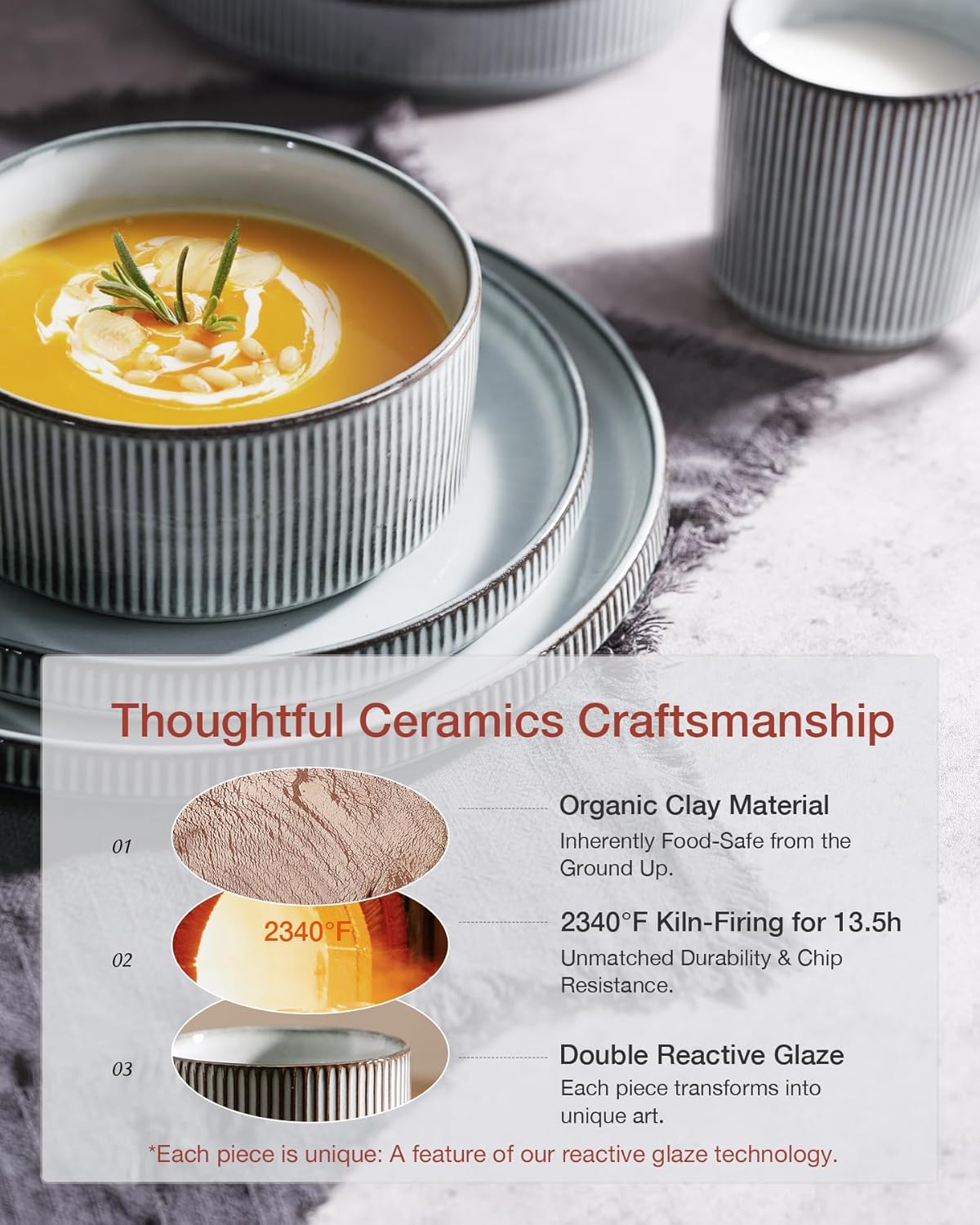 - [Premium Ceramic Durability]: Fired at 2340Β°F for 13.5 hours, our dishes boast impressive weight and thickness. They can resist chipping, scratching and daily wear, ensuring reliable kitchen use. Enjoy worry-free daily use, even with silverware