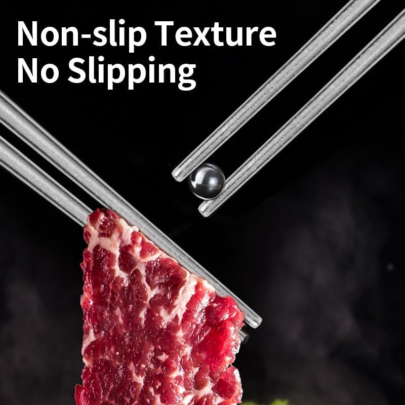- 【Reusable Titanium Chop sticks】The metal titanium chopsticks are reusable, safe and healthy, and will not absorb liquids or substances from food during use. Titanium is odorless and tasteless, so it will not leave an unpleasant effect on the taste buds