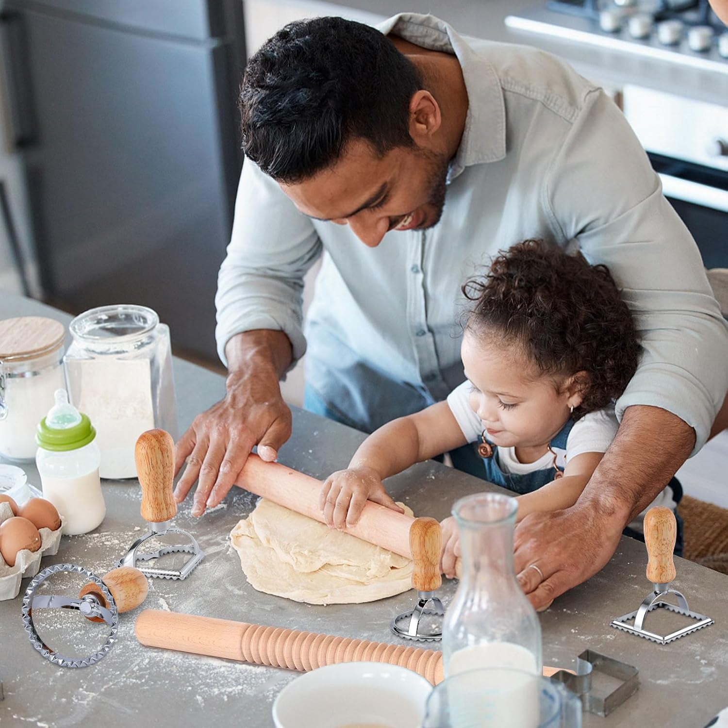 - Package Included: You will receive 11 pieces pasta making tools, that is 6 different ravioli maker cutter stamps, 1 pasta cutter wheel, 1 dough roller, 1 gnocchi board and 1 ravioli rolling pin. These well-designed pasta maker tools will add fun and convenience to your pasta making experience