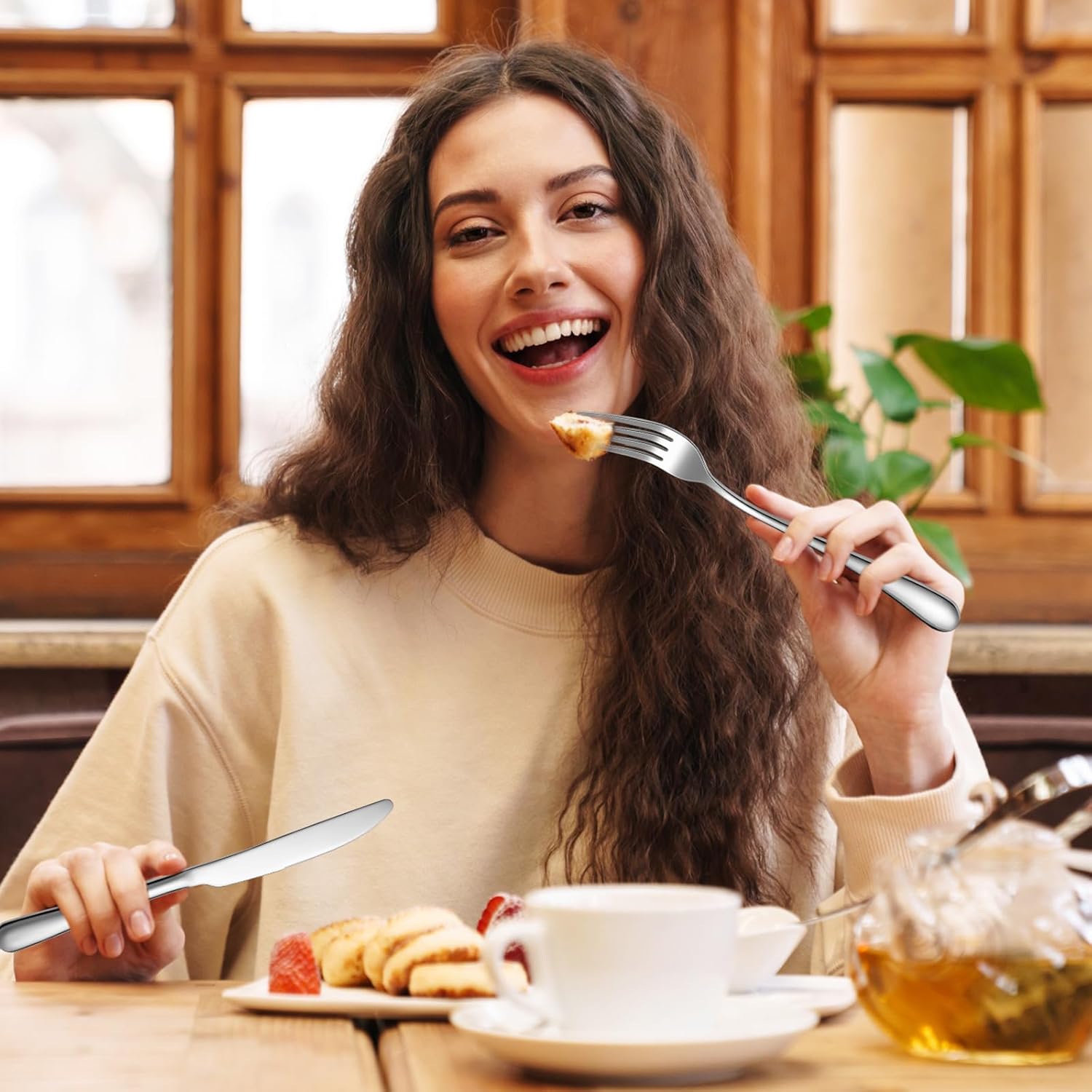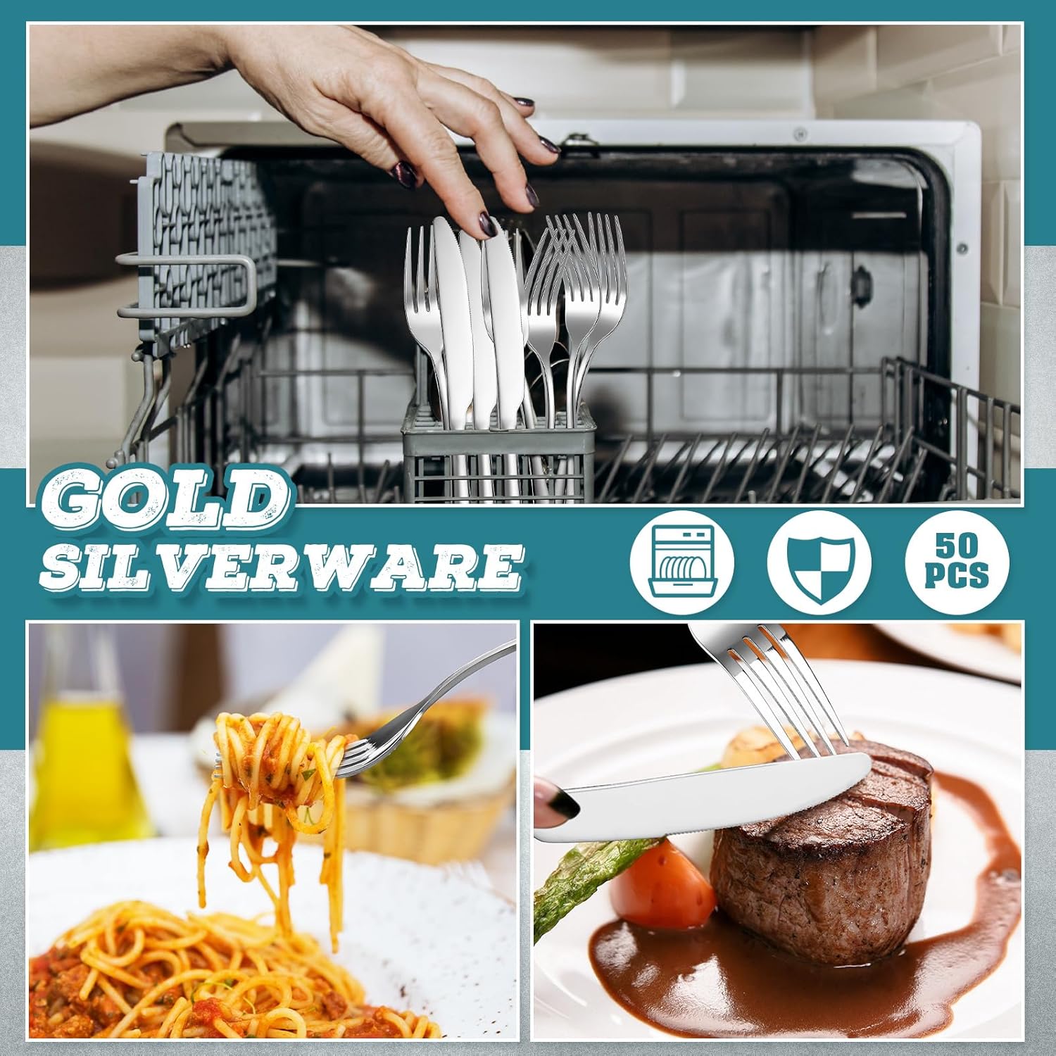 - Quality Material: the forks and knives set is crafted with quality stainless steel; The durability of this material ensures that the utensils will not warp, discolor, or bend easily, which adds longevity, at the same time, it is also dishwasher safe, bringing you convenience