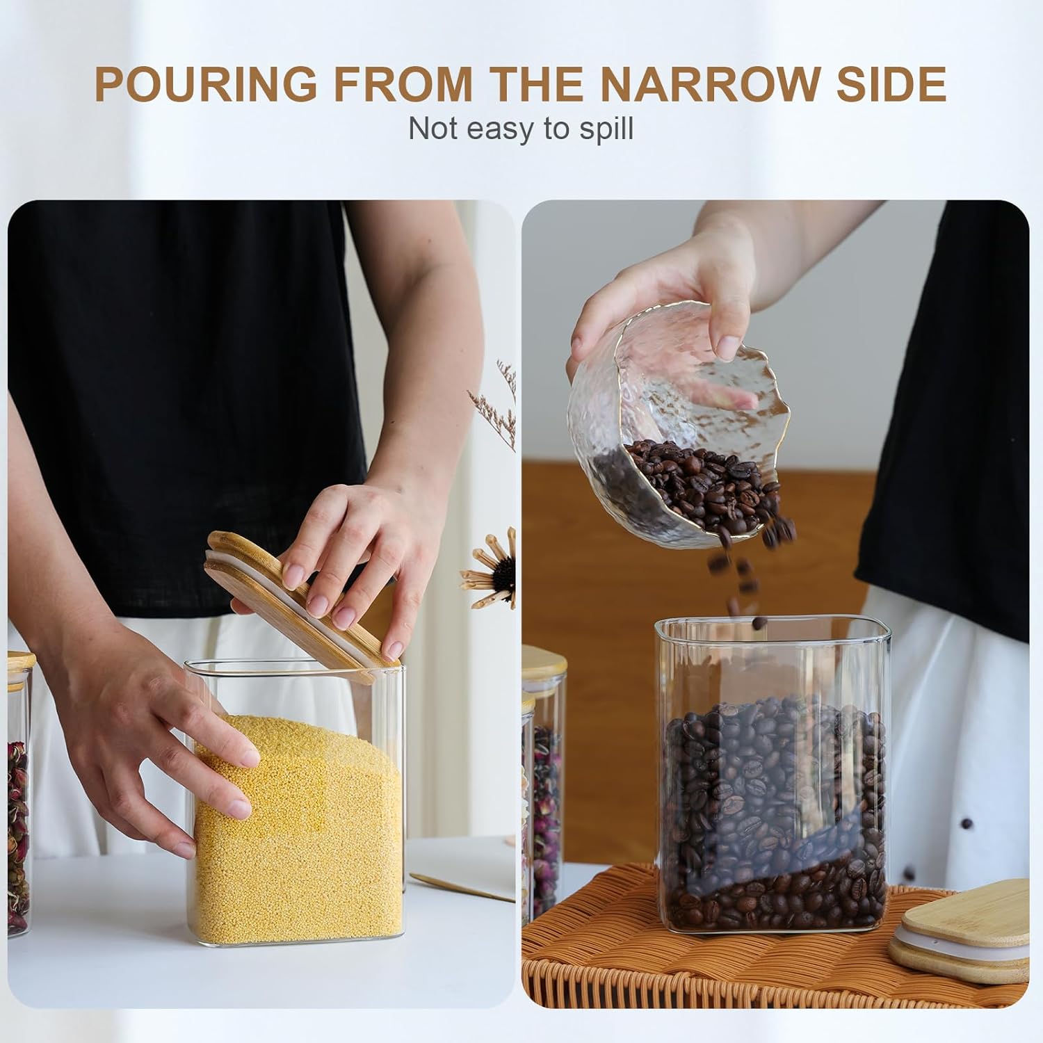 - Elegant and Practical Design: Elevate your kitchen organization with the sleek, square design of our Glass Food Storage Jars. These jars aren't just functional β they're also a stylish addition to your countertop or pantry. The clear glass allows you to easily identify the contents, making meal prep and cooking a breeze.
