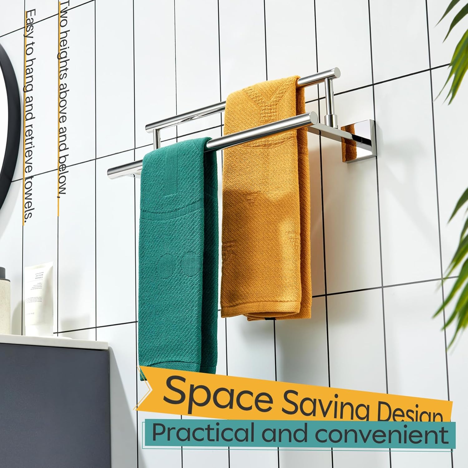 - ◄ MODERN DESIGN ► KOKOSIRI double towel rack with two rails combines elegant square, sleek round, and unique rectangle elements to bring a modern aesthetic to your bathroom, shower room, toilet, kitchen, washroom, pool or garage. You can choose from our series of bathroom hardware for a complete, coordinated look to your place