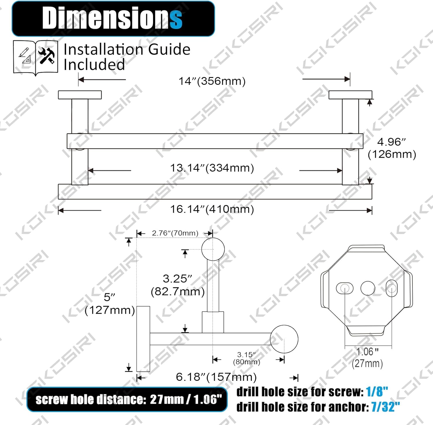 - ◄ PREMIUM MATERIAL ► KOKOSIRI Double Towel Bars made of SUS304 Stainless Steel and features an all-metal design using high-grade steel to resist rust and corrosion from daily use. For your health, all the materials we use are the highest quality and harmless. You can rest assured to use all of our products