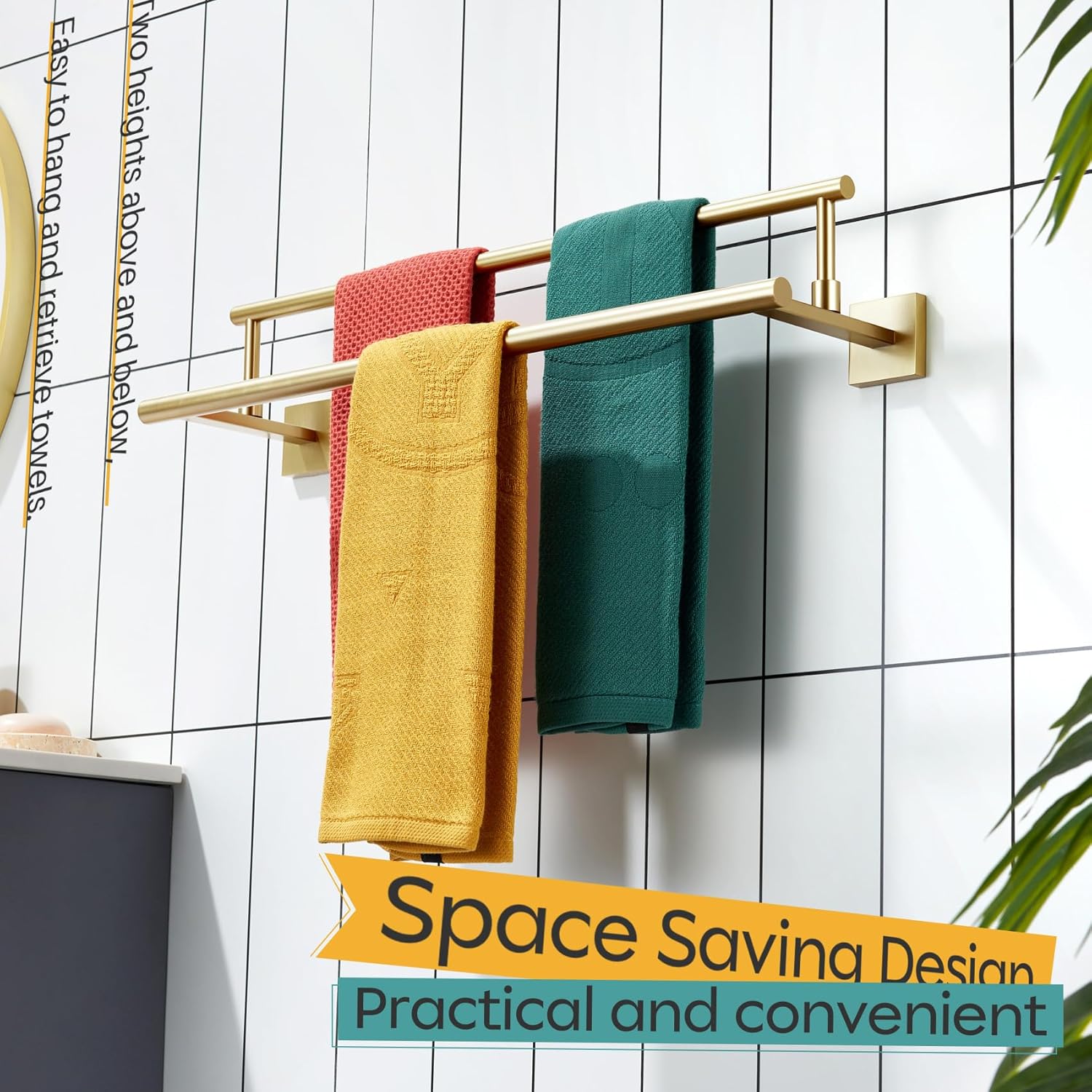 - ◄ MODERN DESIGN ► KOKOSIRI double towel rack with two rails combines elegant square, sleek round, and unique rectangle elements to bring a modern aesthetic to your bathroom, shower room, toilet, kitchen, washroom, pool or garage. You can choose from our series of bathroom hardware for a complete, coordinated look to your place