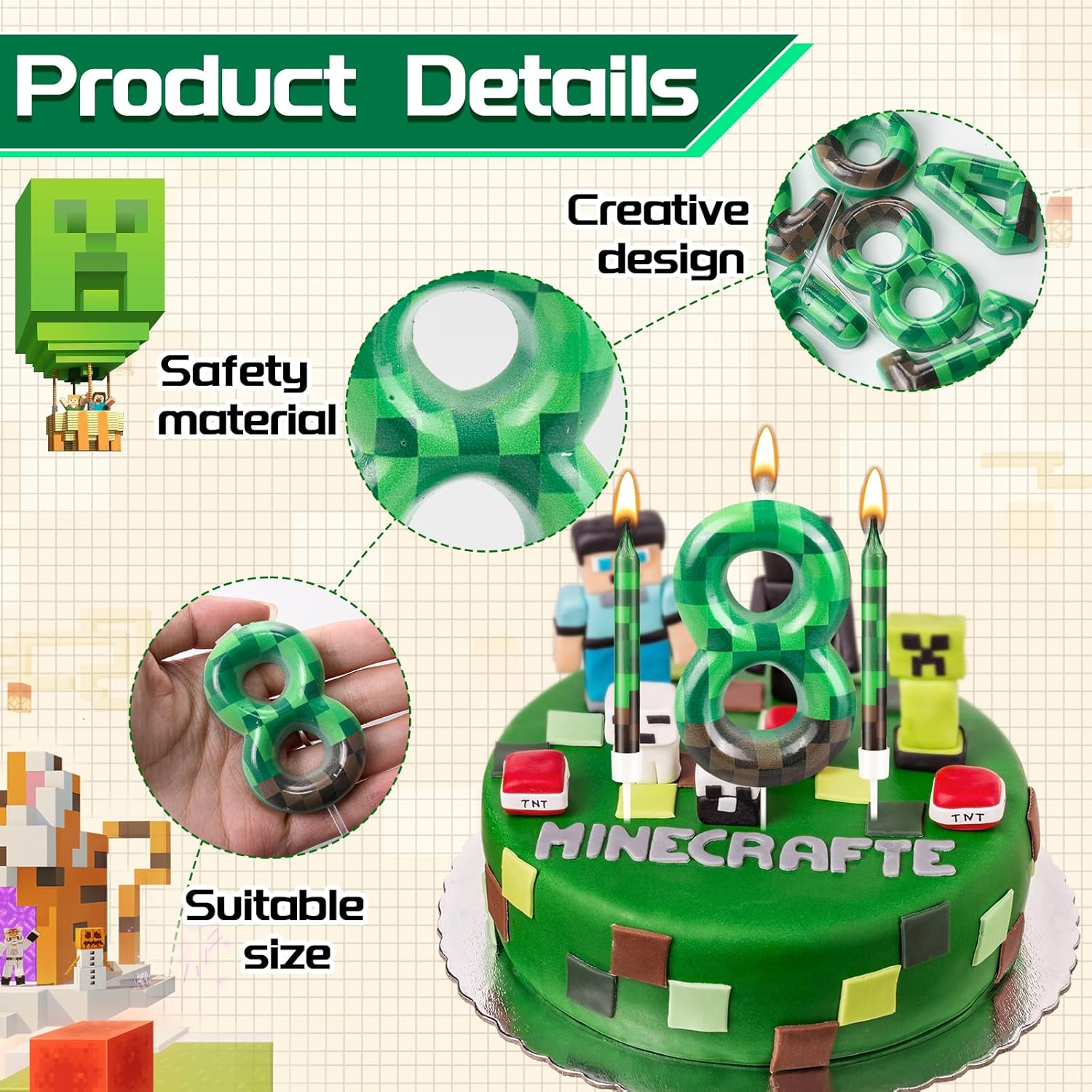 - Multiple Occasions: You can use these candles in many occasions birthday cake, such as birthday party, theme party, summer party, pixel theme birthday party, anniversary party, dynamite theme party, Video Game Party, these candles can show your good taste