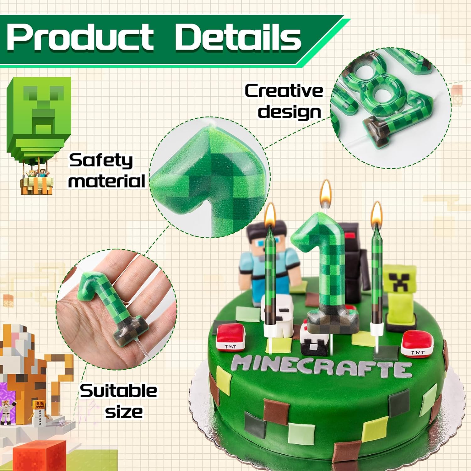 - Multiple Occasions: You can use these candles in many occasions birthday cake, such as birthday party, theme party, summer party, pixel theme birthday party, anniversary party, dynamite theme party, Video Game Party, these candles can show your good taste